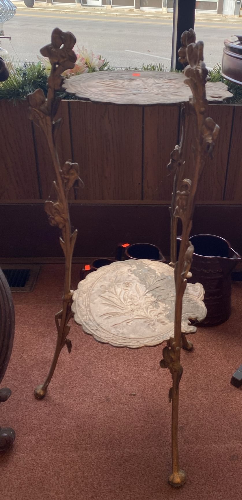 289 Ornate 2-Tier Art Nouveau Brass Plant Stand 28”