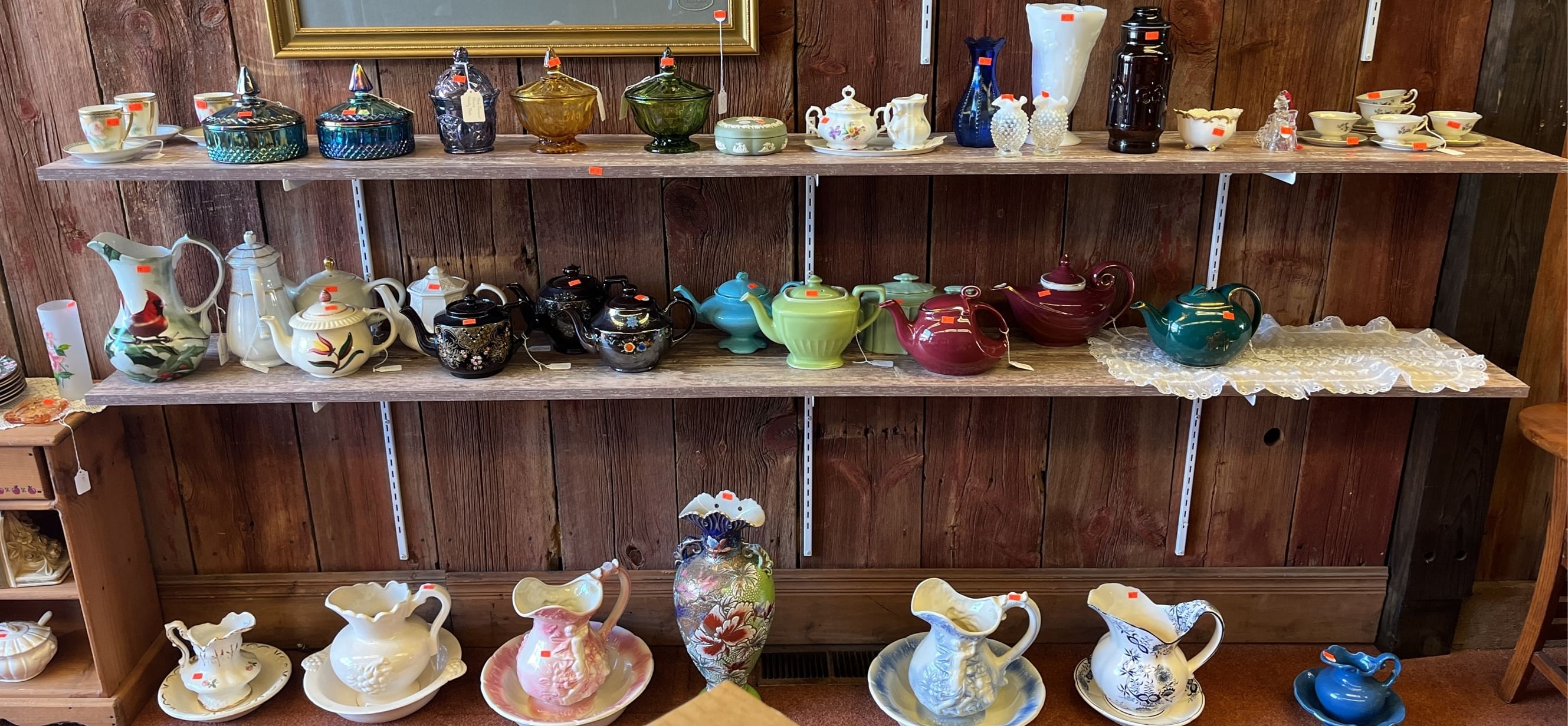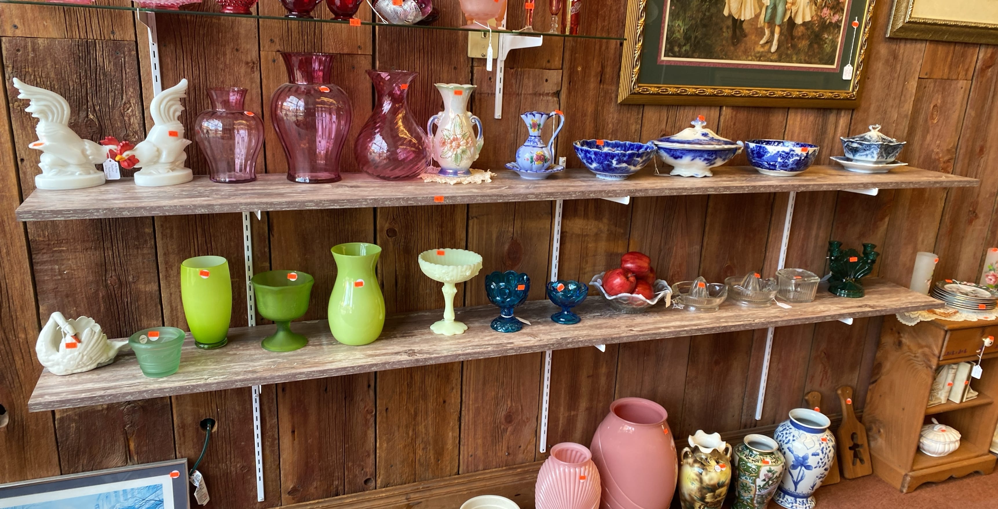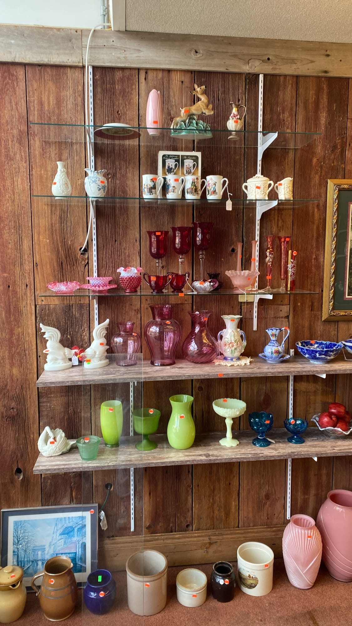 Glassware inc. Flow Blue, Hobnail, Fenton, Jewel Tea, Lefton, Nippon • Cast Iron Toys • Antiques • Pottery • Hummels • Vintage Cameras & More!