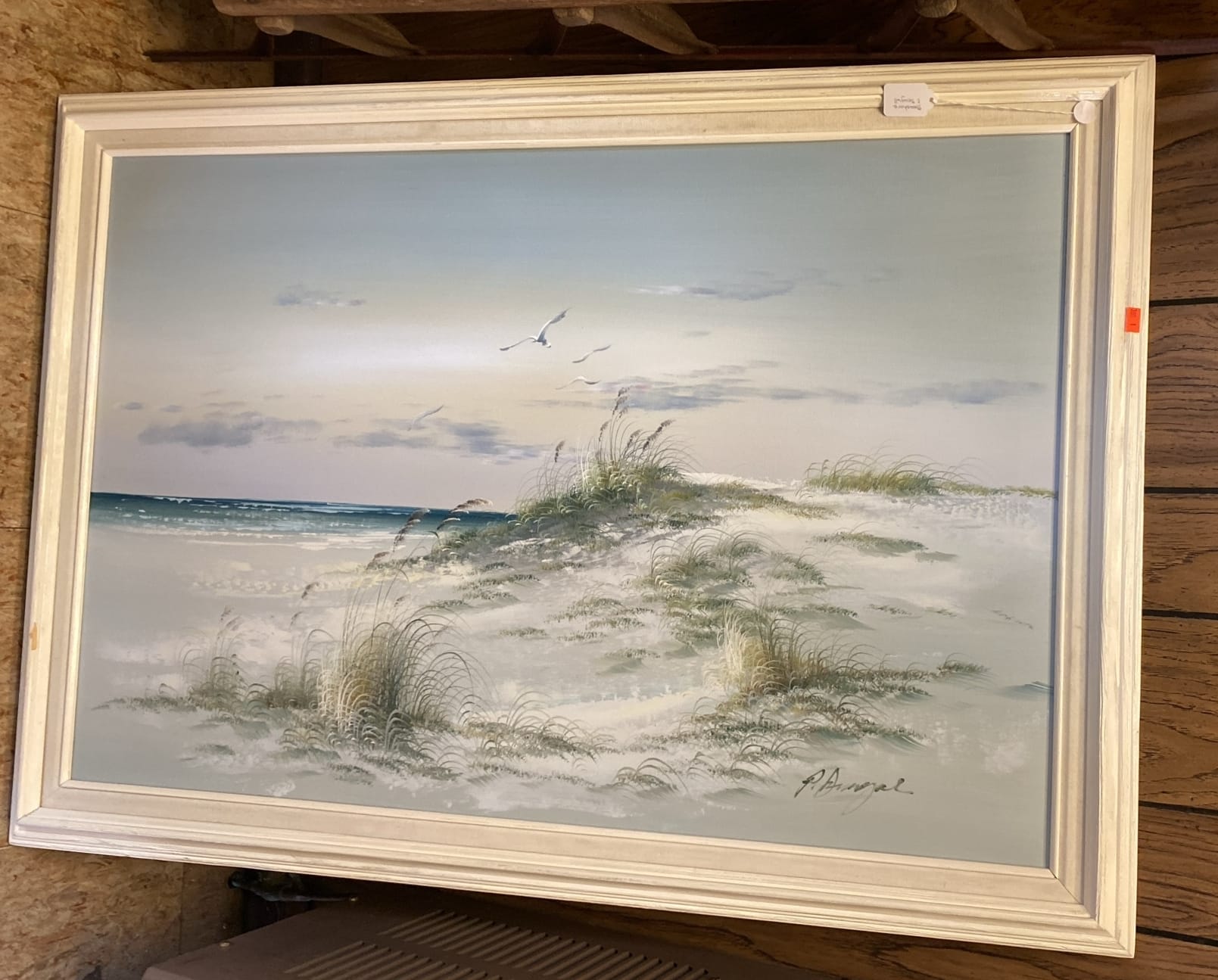 300 Seashore & Seagull Painting in Wood Frame 41x28.5”