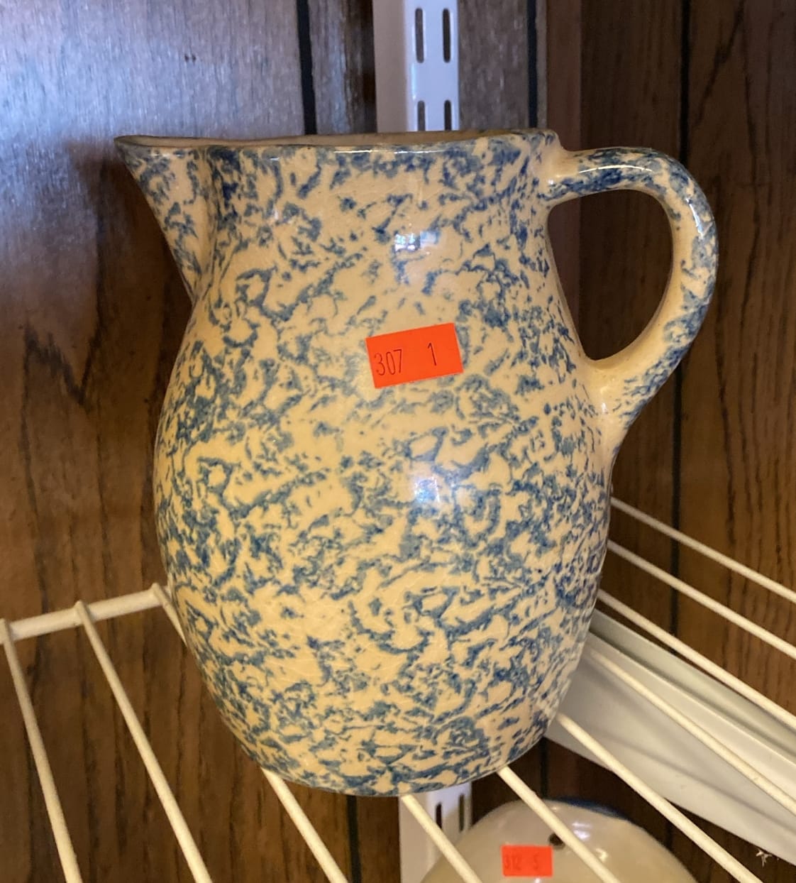 307 Unmarked Robinson Ransbottom Blue & White Pitcher 6”