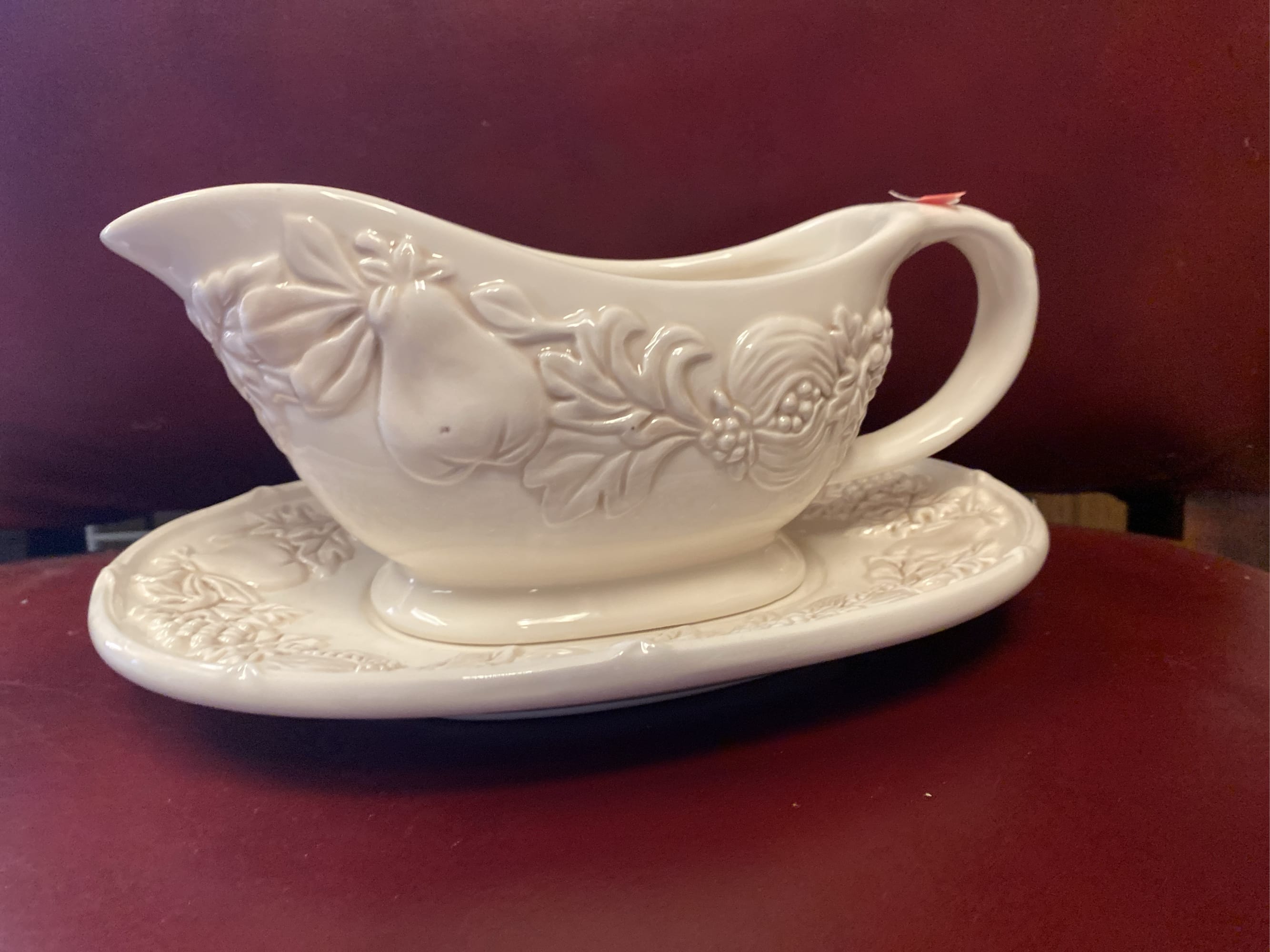 313 Gibson Home 2 Piece Durastone Gravy boat with Saucer 9”