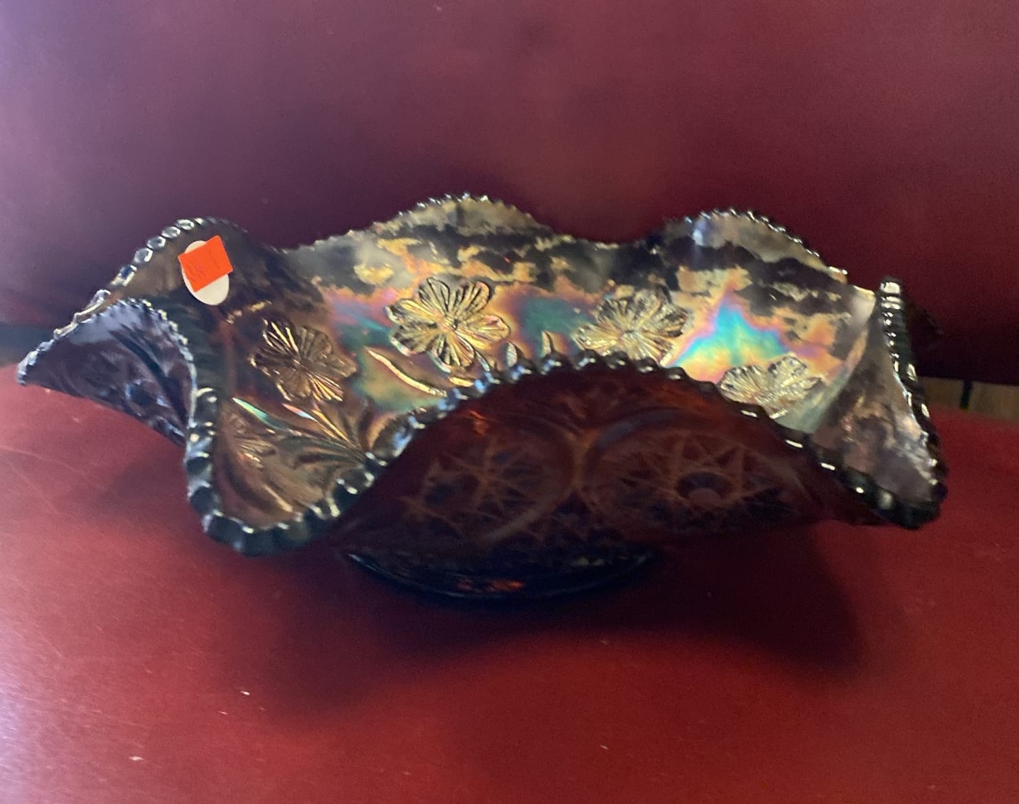 314 Millersburg Primrose Amethyst Carnival Glass Bowl 8”