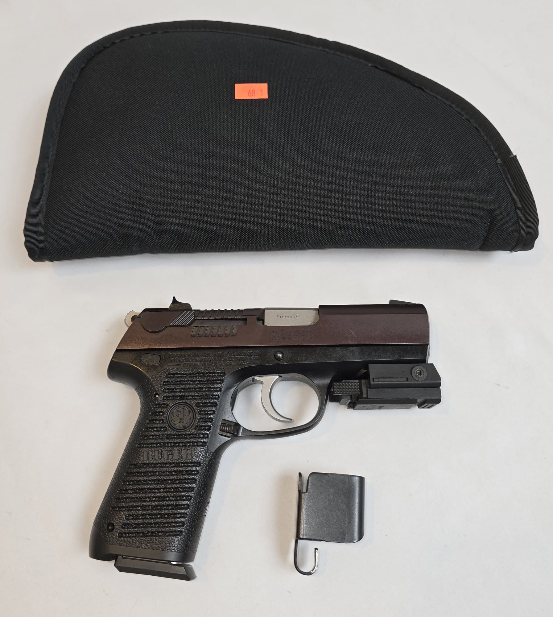 68 Ruger Model P95 9mm Pistol with NC Star Laser, Speed Loader, and Soft Case