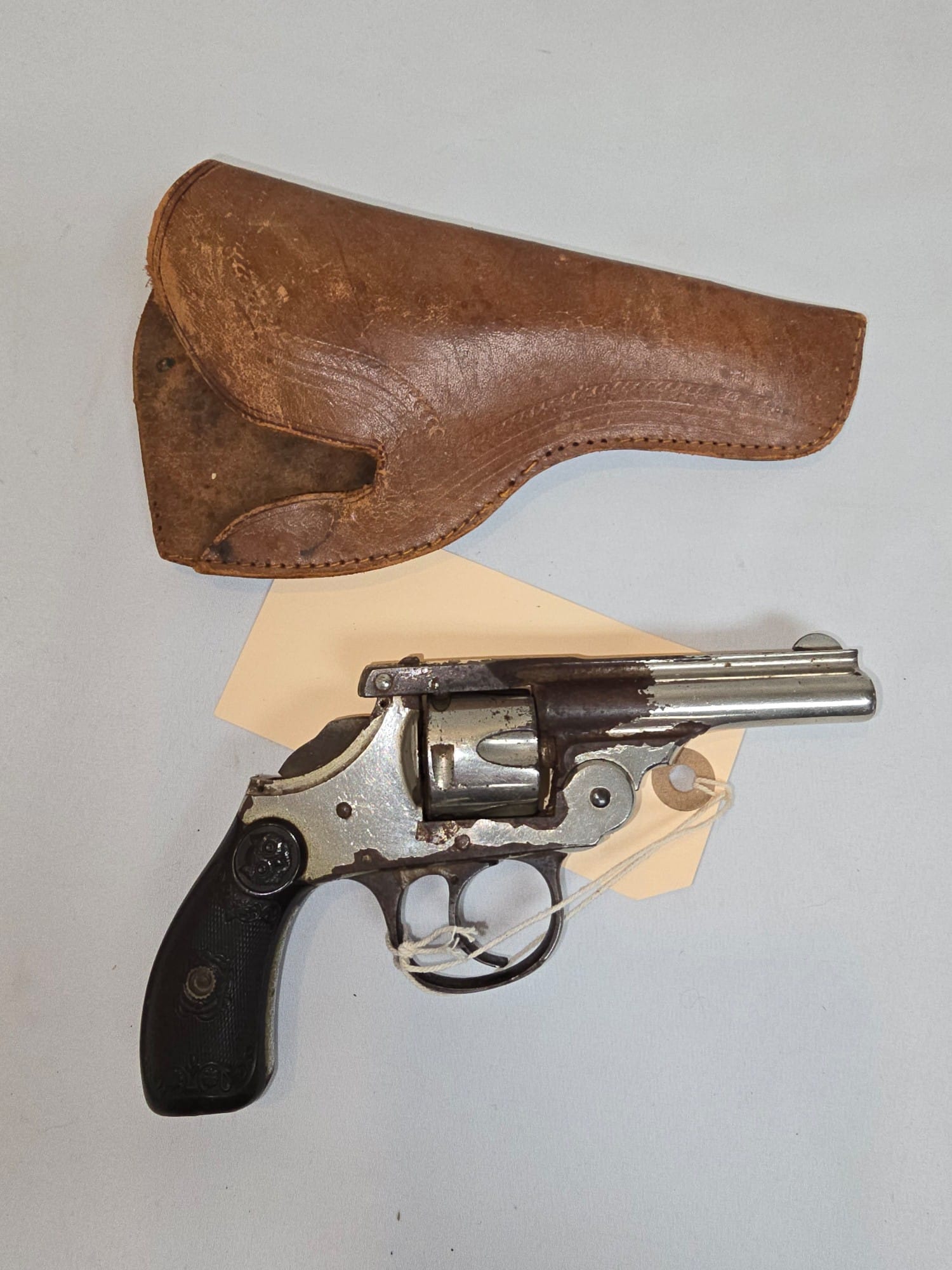 84 Iver Johnson Model NMN .32 Cal 5 Shot Revolver with Leather Holster, rusted