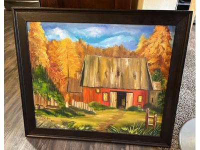 104 Betty Mcloughan 2021 framed barn painting 28x24