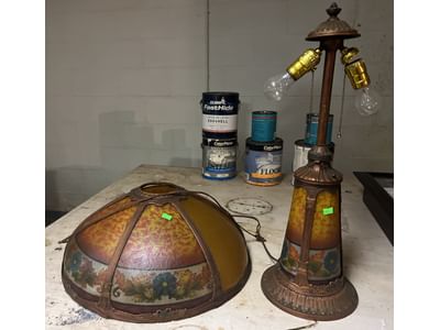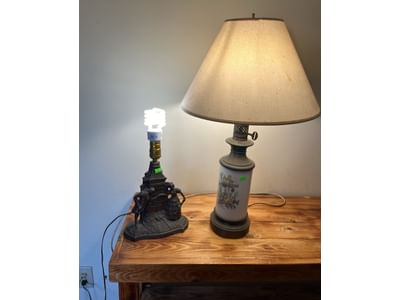 106 Lamp w/ cast Victorian "Love Meets" Base - no shade 15”, Asian motif metal and glass lamp 26”