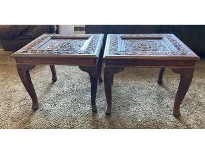 110 2 Ornate carved wood end tables 22x22x18
