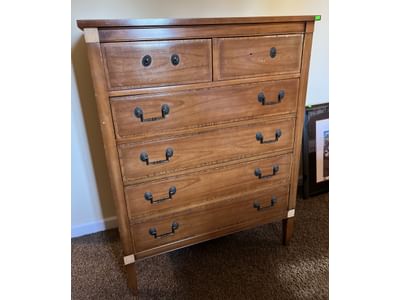 201 Dixie chest of drawers 36x18x46 1/2 some finish damage and missing drawer pulls