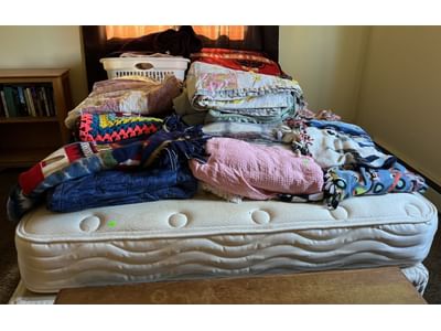 205 Mattress, box springs and bed frame 59” with blankets assortment