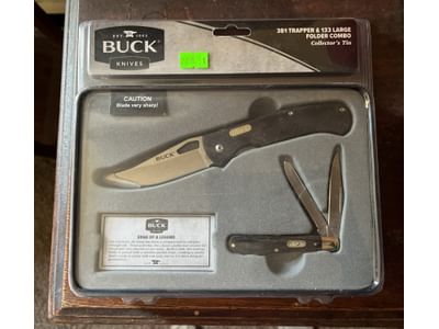 208 Buck knives 381 trapper & 133 folder combo collectors tin