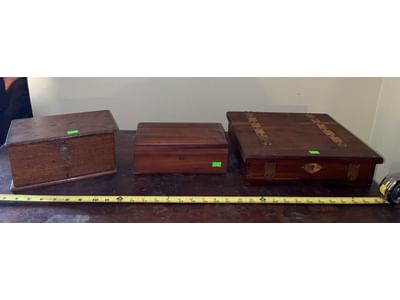 212 3 Wood boxes 9x5x5, 9x5x3 1/2, 12 1/2x11x3 1/2