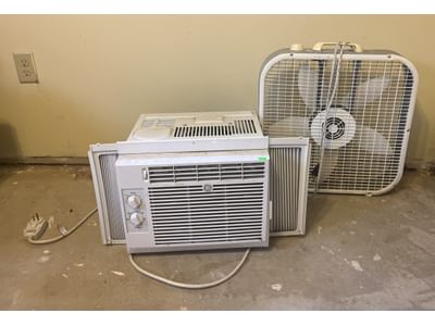 408 GE window air conditioner and box fan 20"