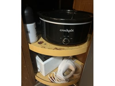 507 Crock pot, toastmaster toaster, Hamilton Beach mixer, misc. contents of cabinet as shown in pictures