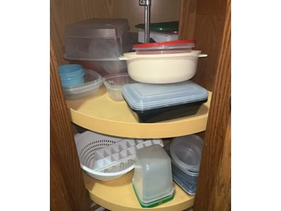 510 Plastic containers, misc. contents of cabinet as shown in pictures