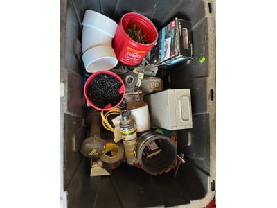 840 Screws, nails, PVC elbow, electrical & plumbing assortment