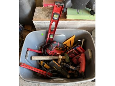 841 Power tools, level, 18” pipe wrench, tools