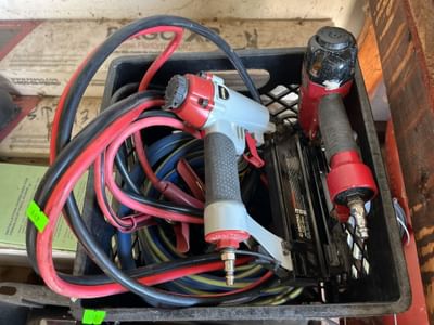842 Tool Shop & Central pneumatic nailers, jumper cables, air hose