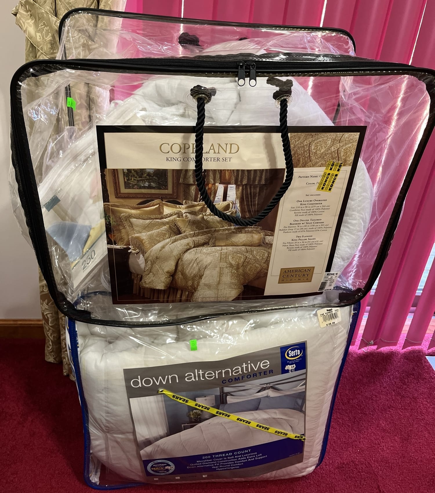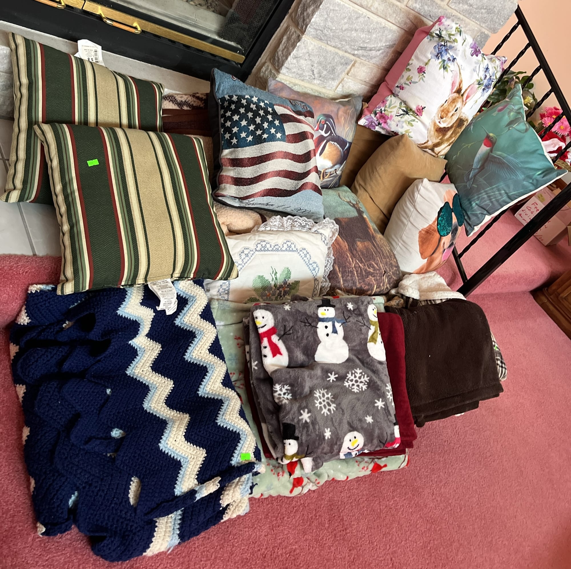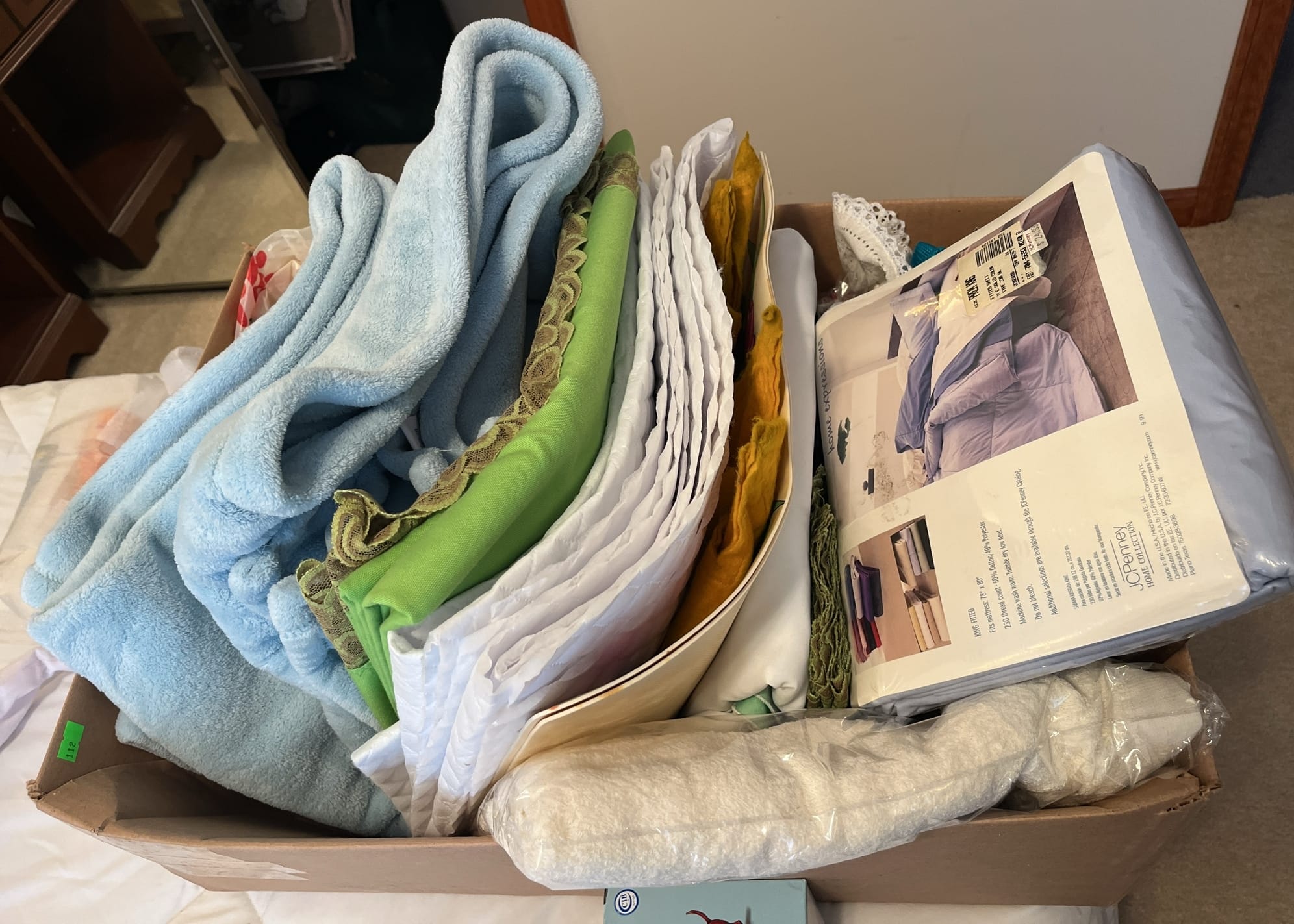 112 Tablecloths, placemats, blanket, king size fitted sheet