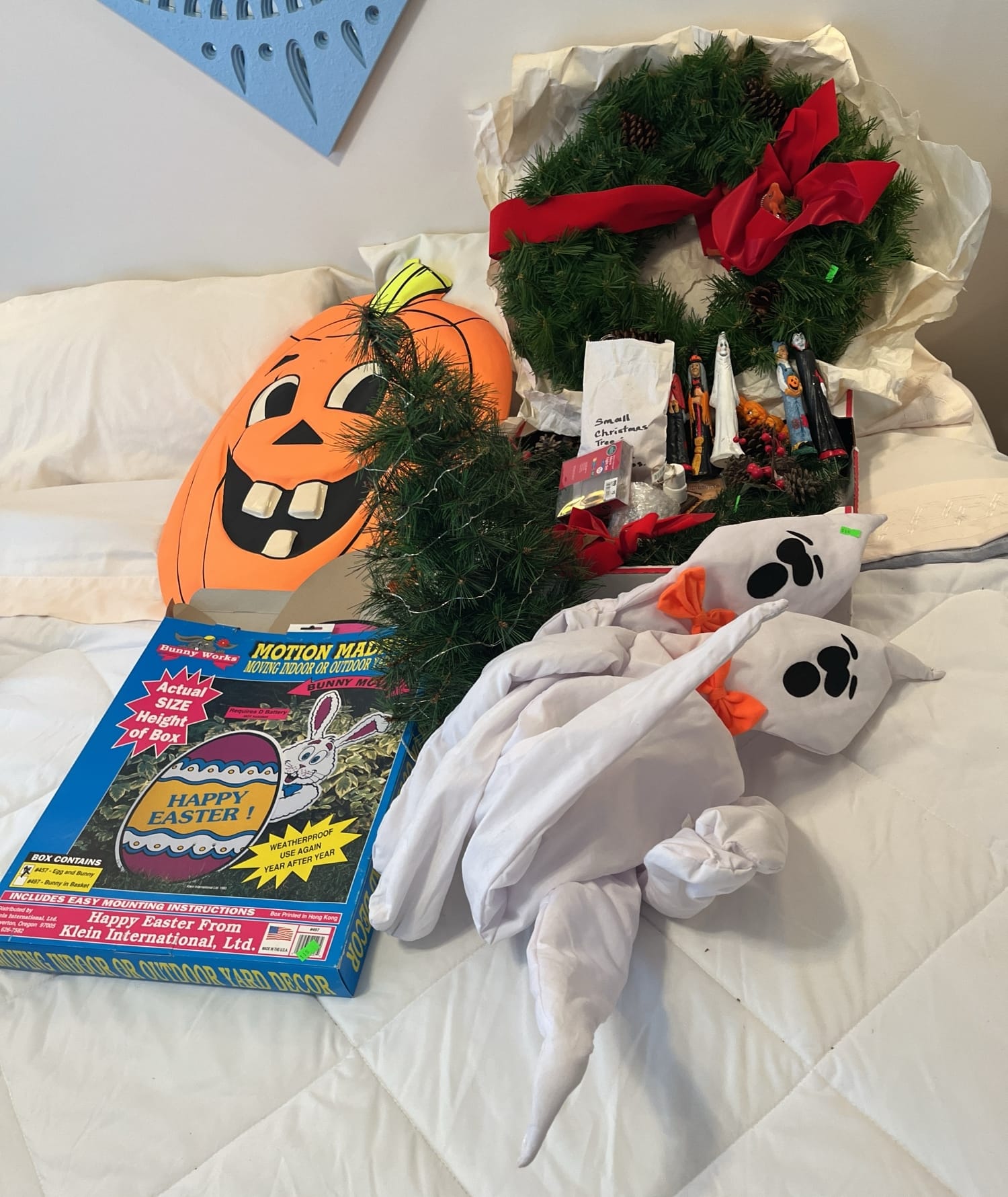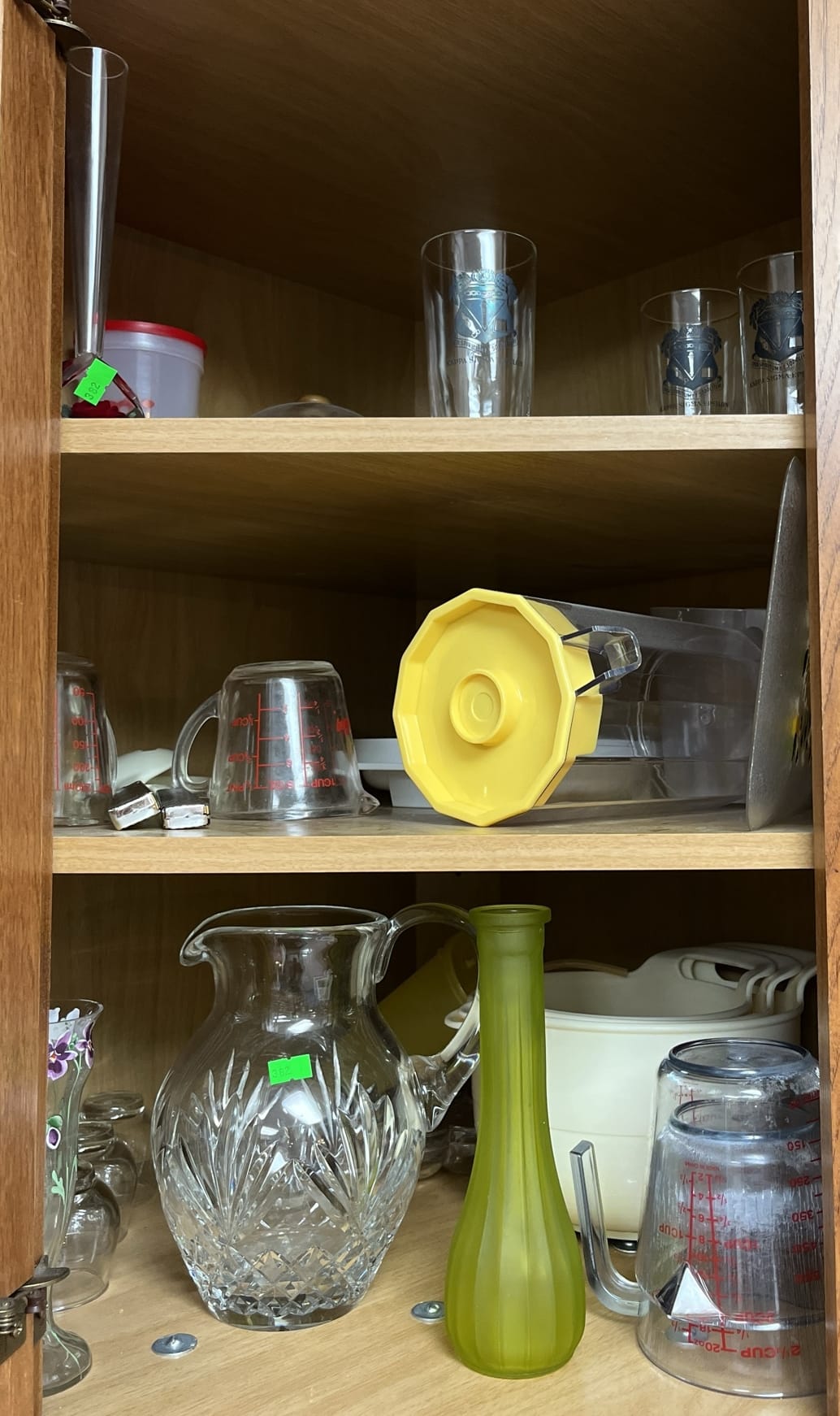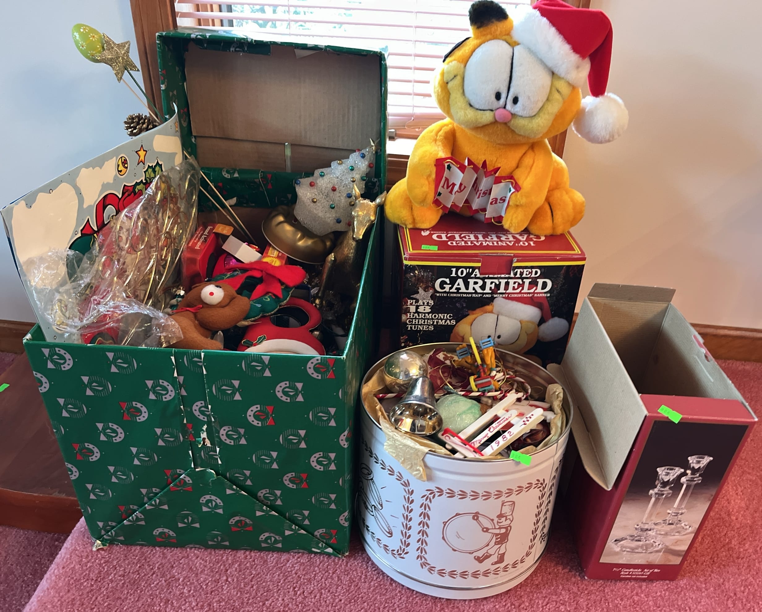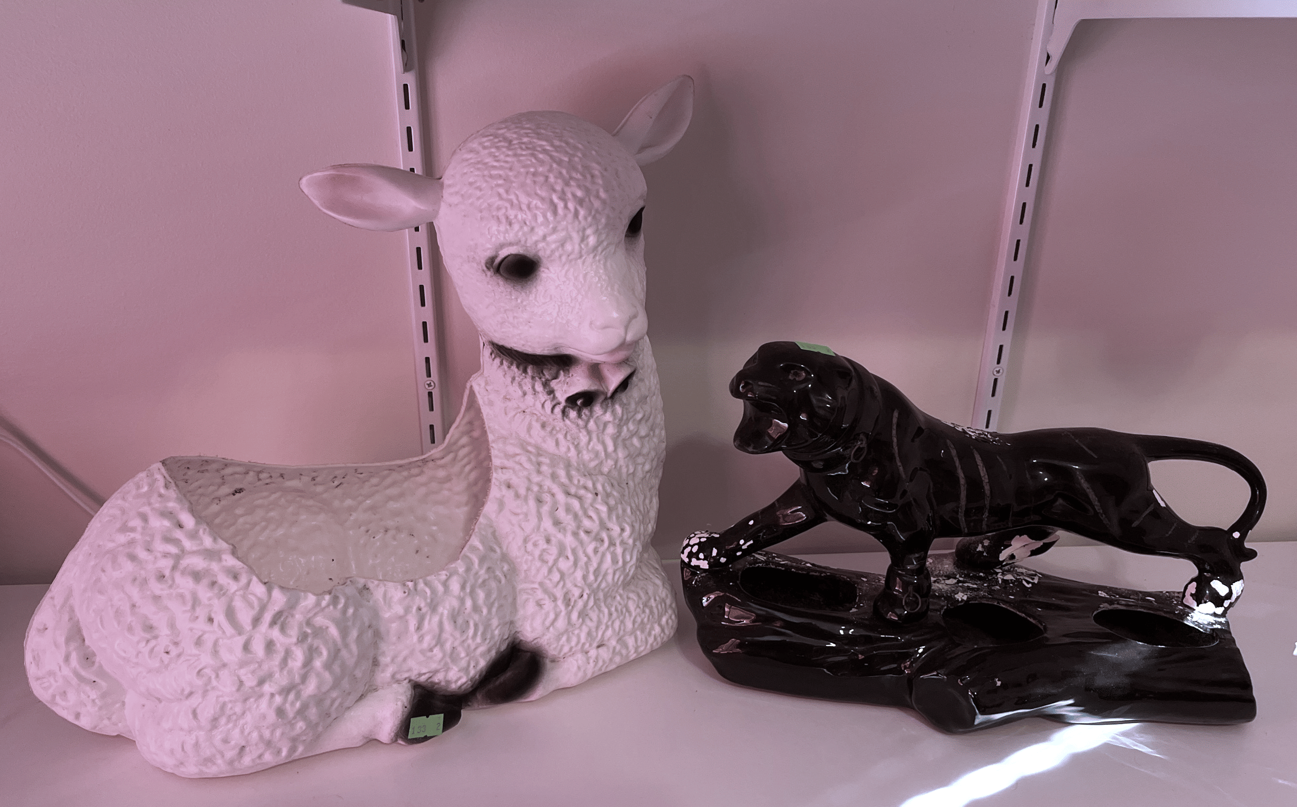134 Candles, floral arrangements, vases, decanter, Kappa Sigma Epsilon 1960 piggy bank, planters, figurines, music box
