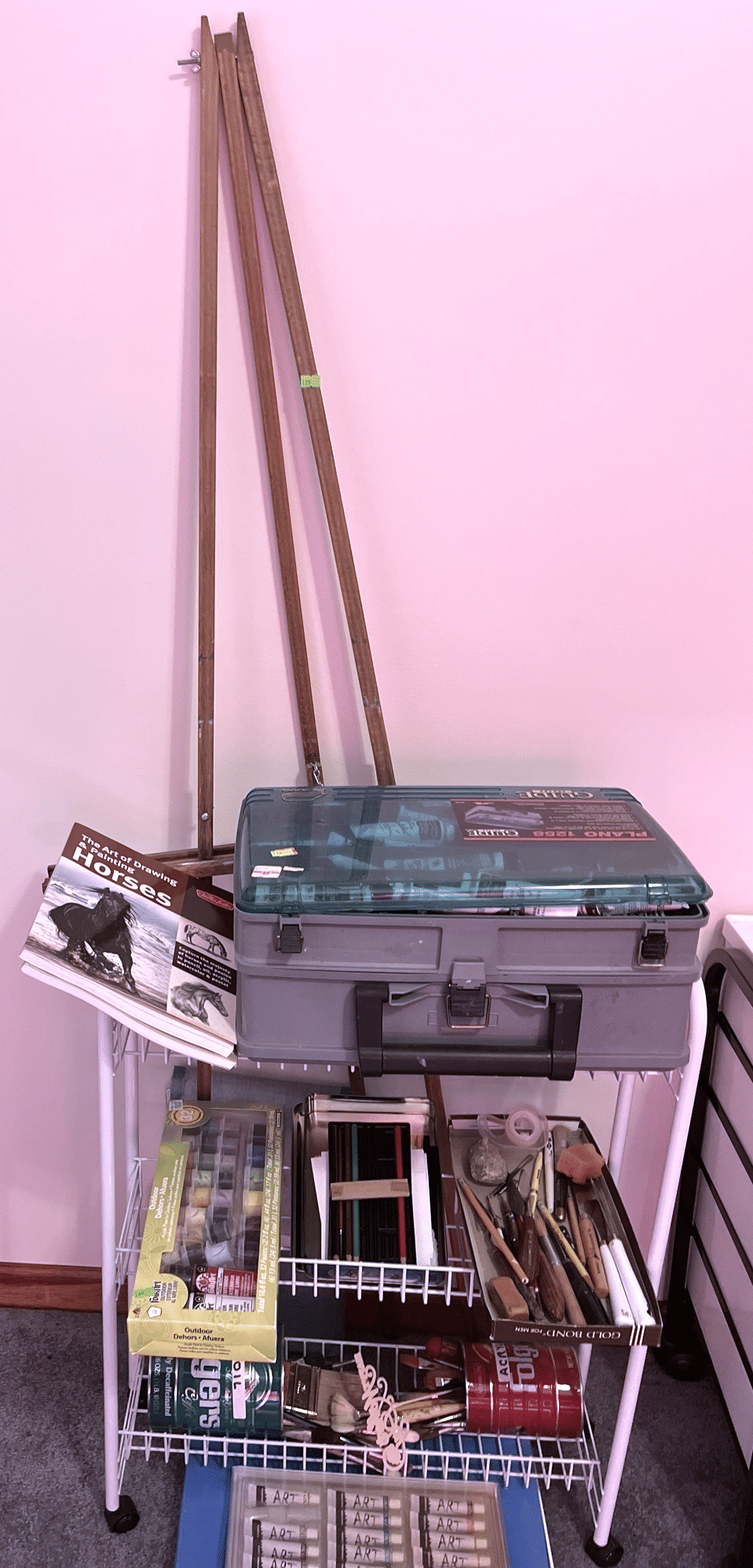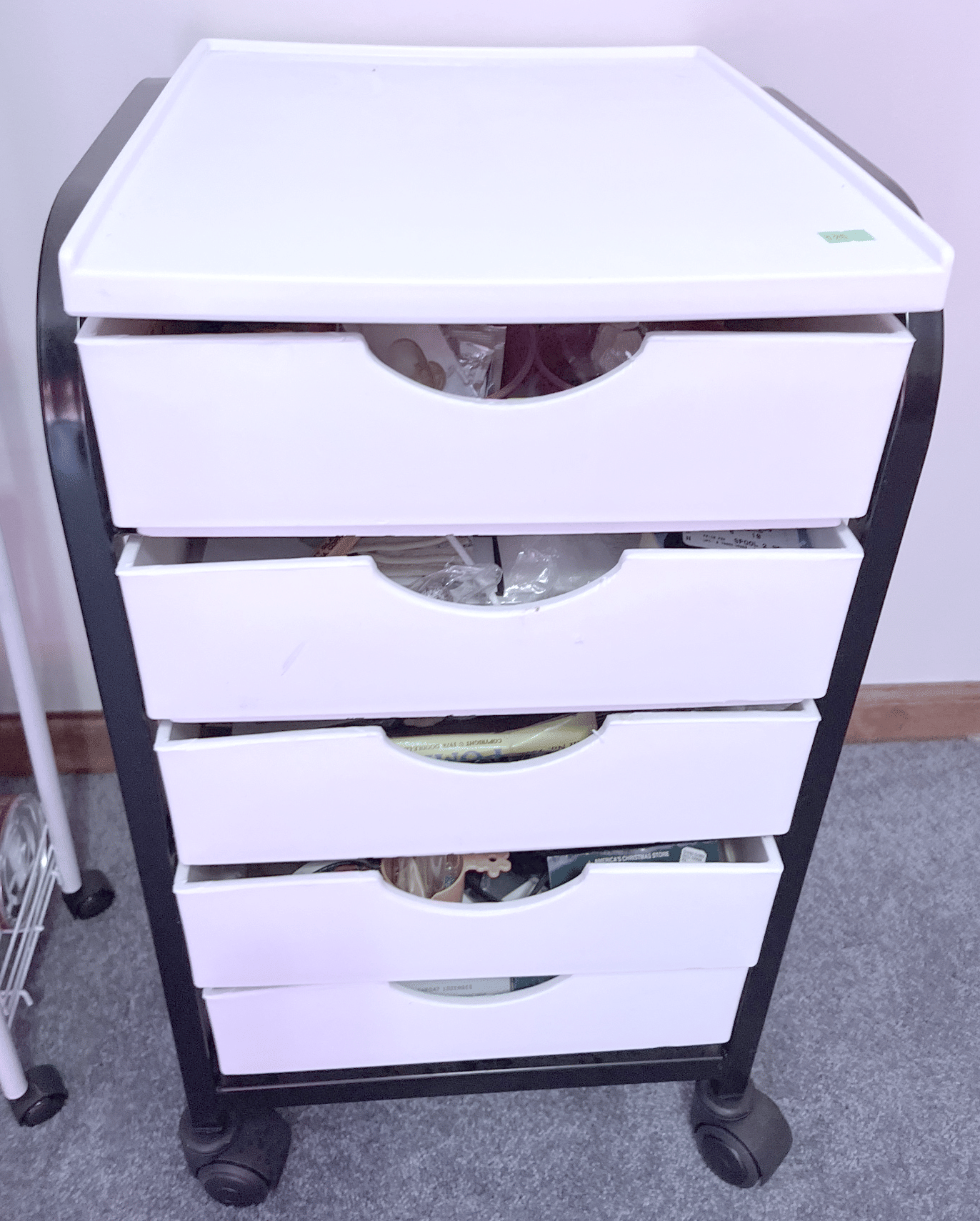 125 Wheeled Cart 15x16x27 with arts and craft supplies