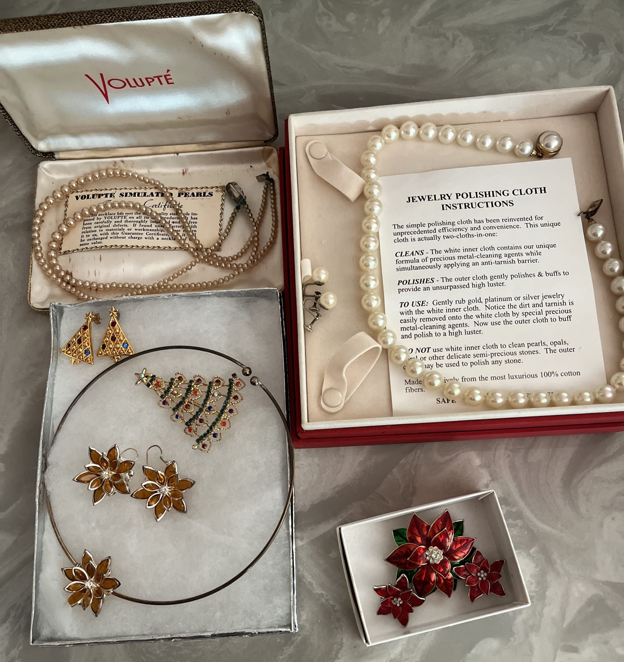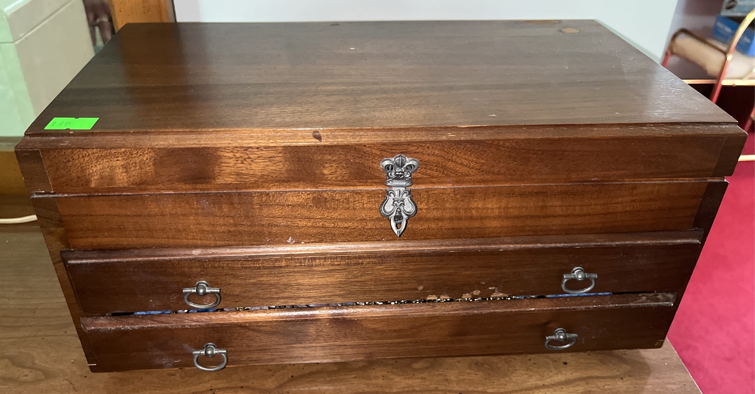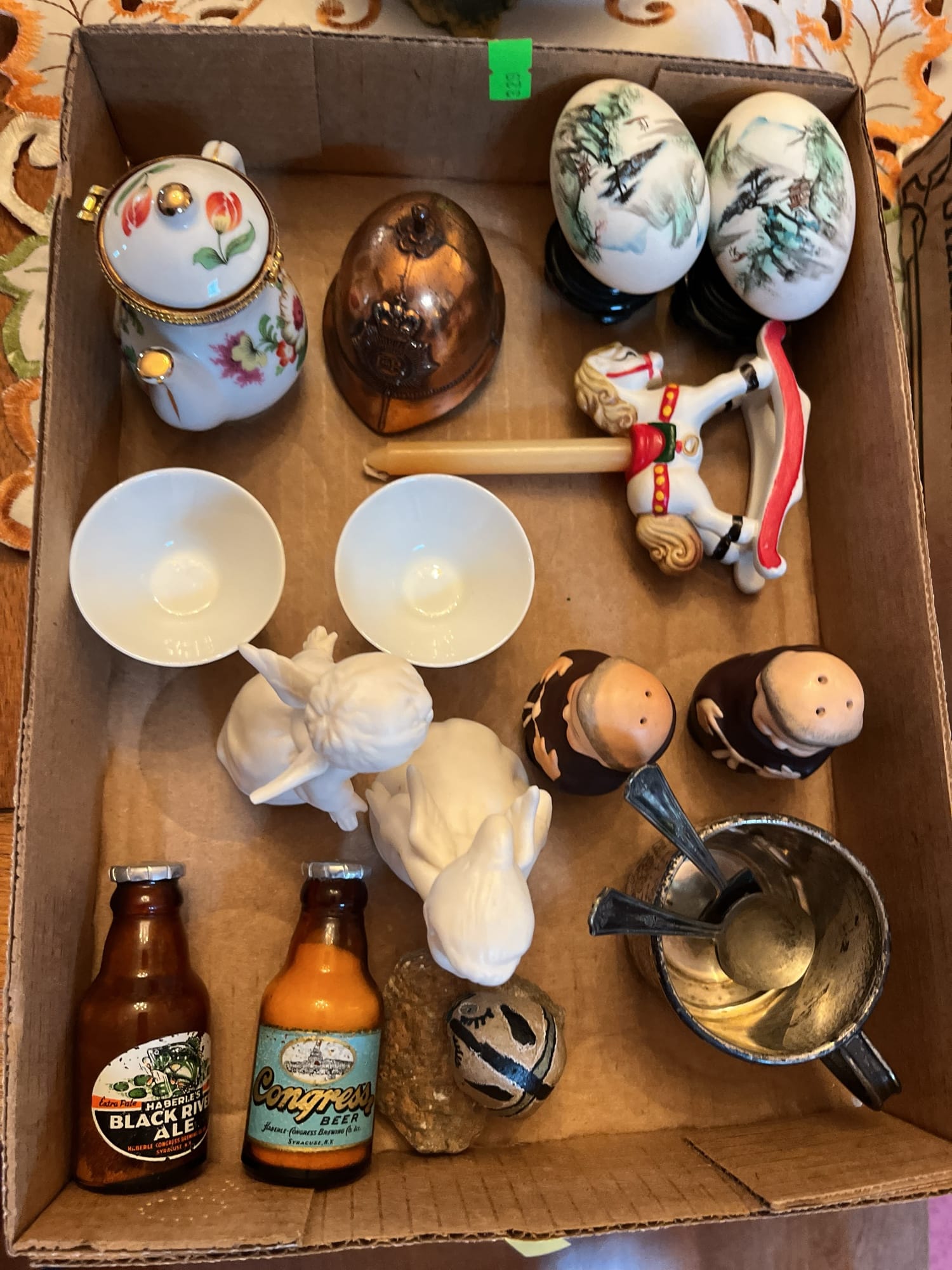 102 Wood jewelry container, Christmas snow globes , music box, resin bear, porcelain egg