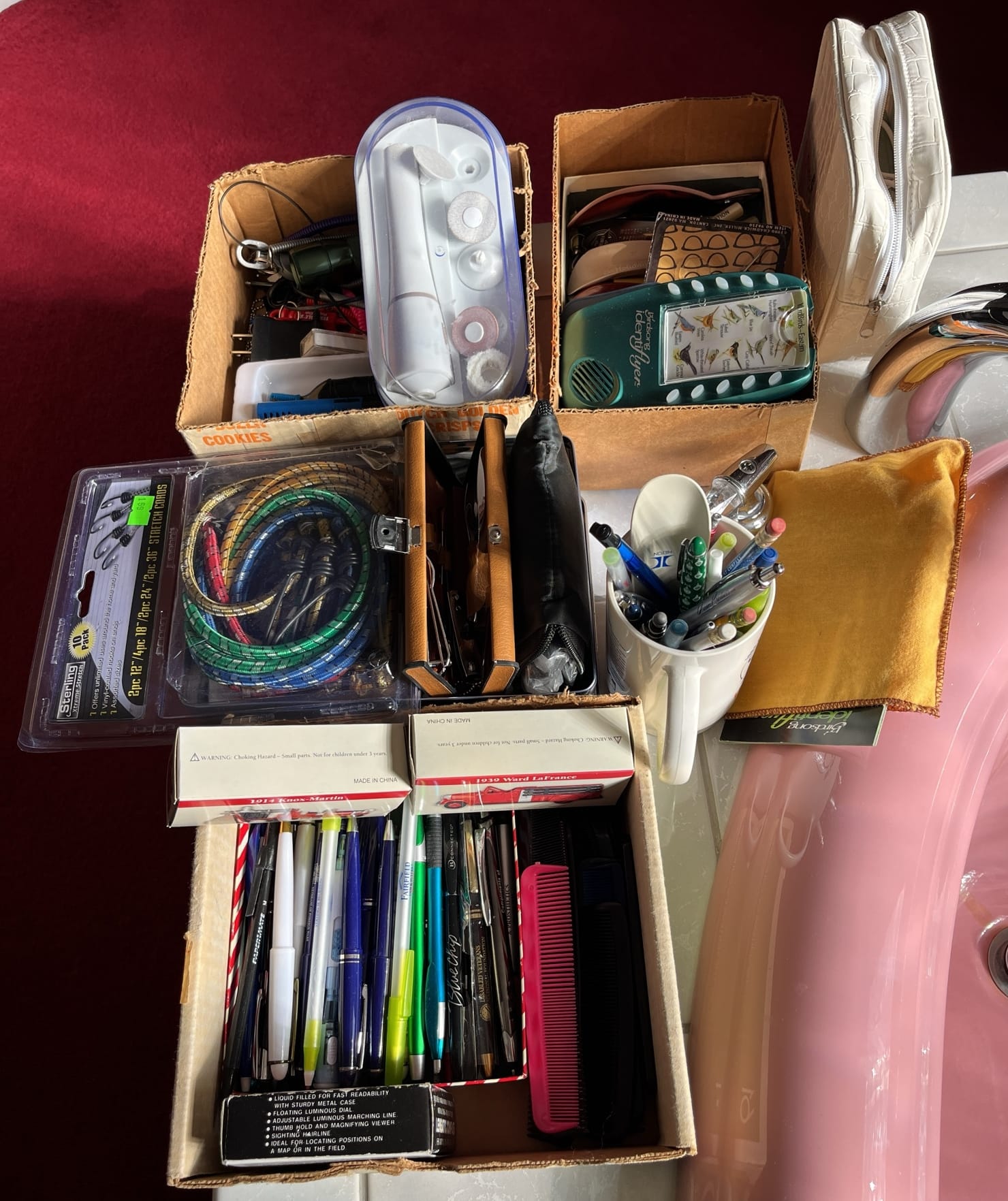 159 Combs, pens, stretch cords, nail kit, flashlight, assortment