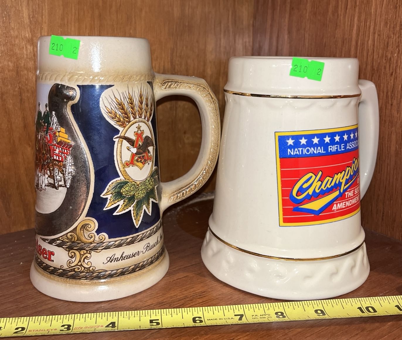 213 Hawaii wood snifter, mugs, colts banner, American Flag