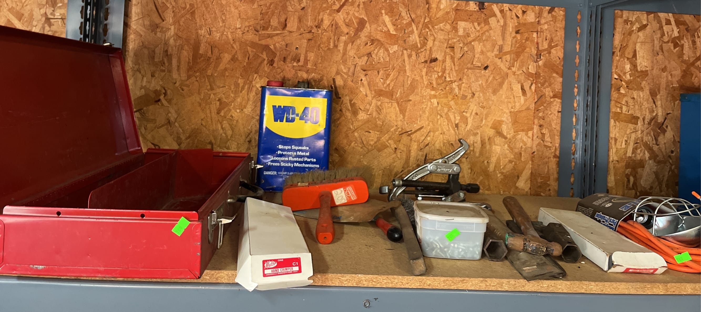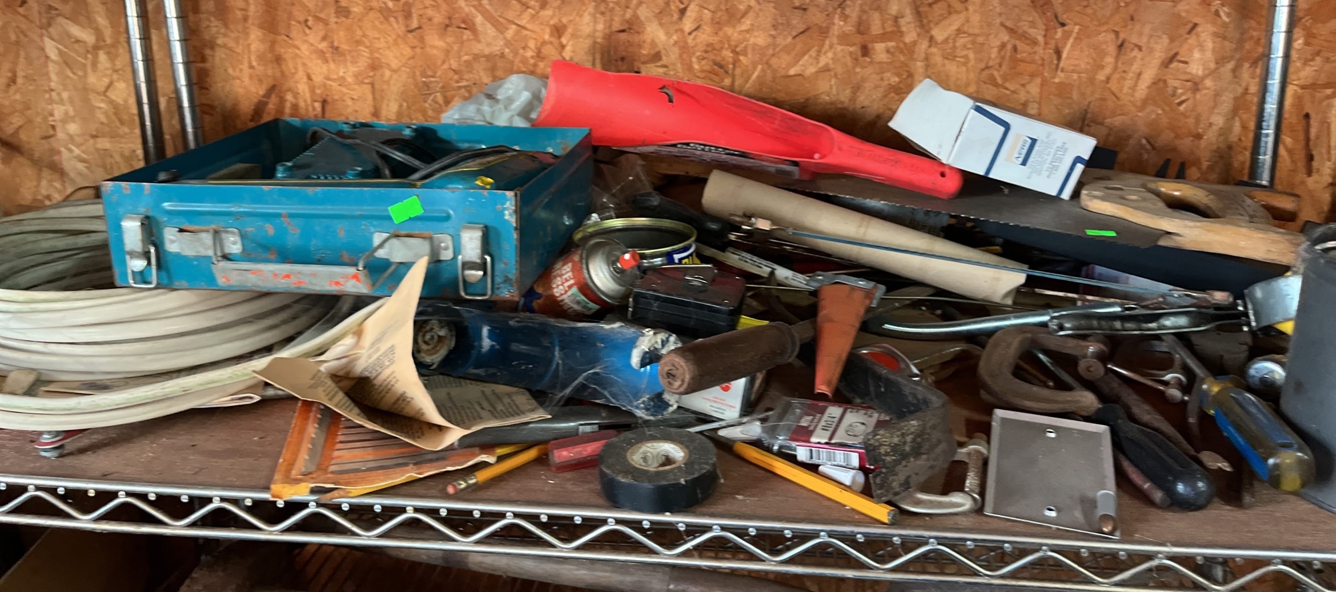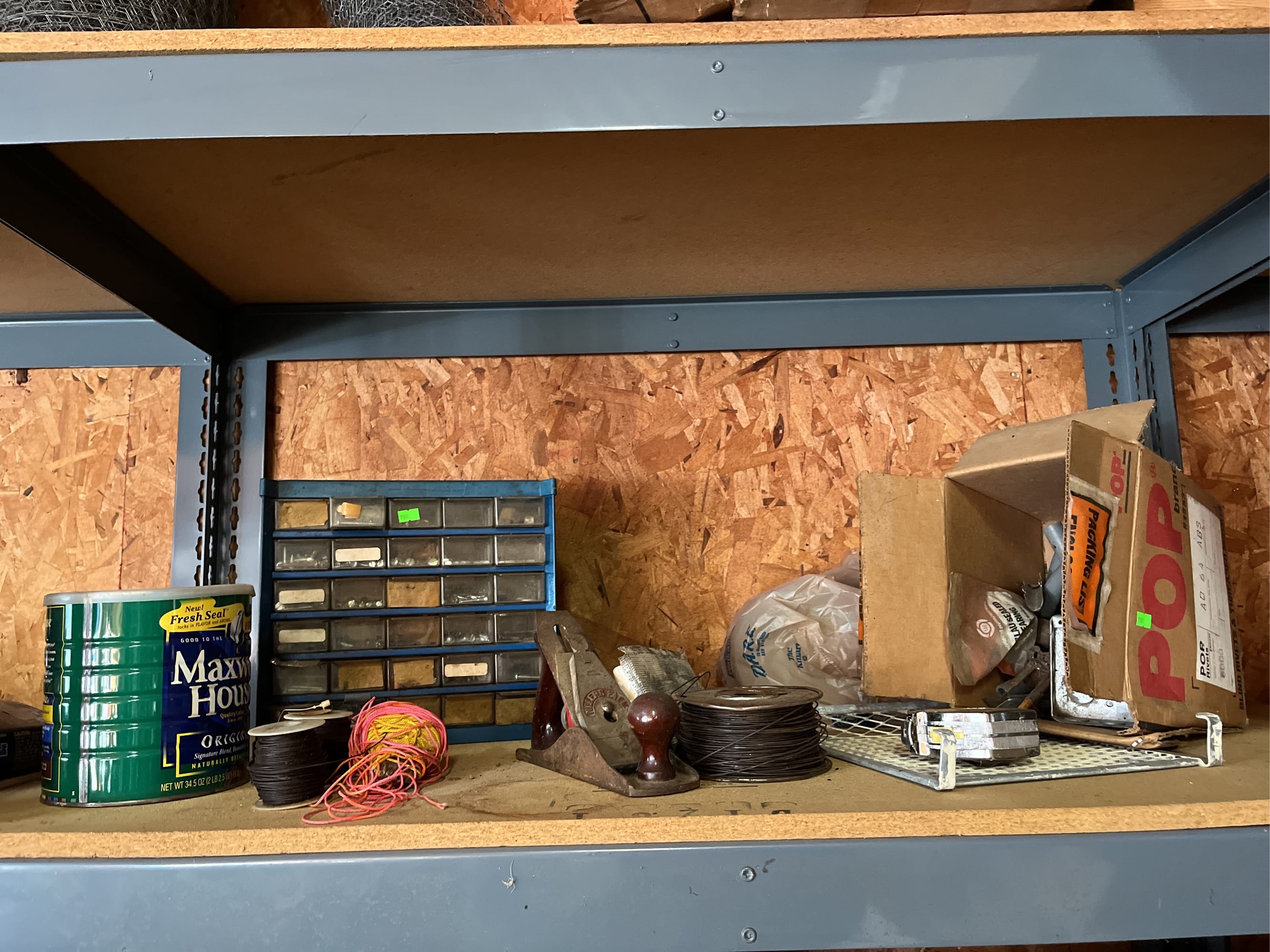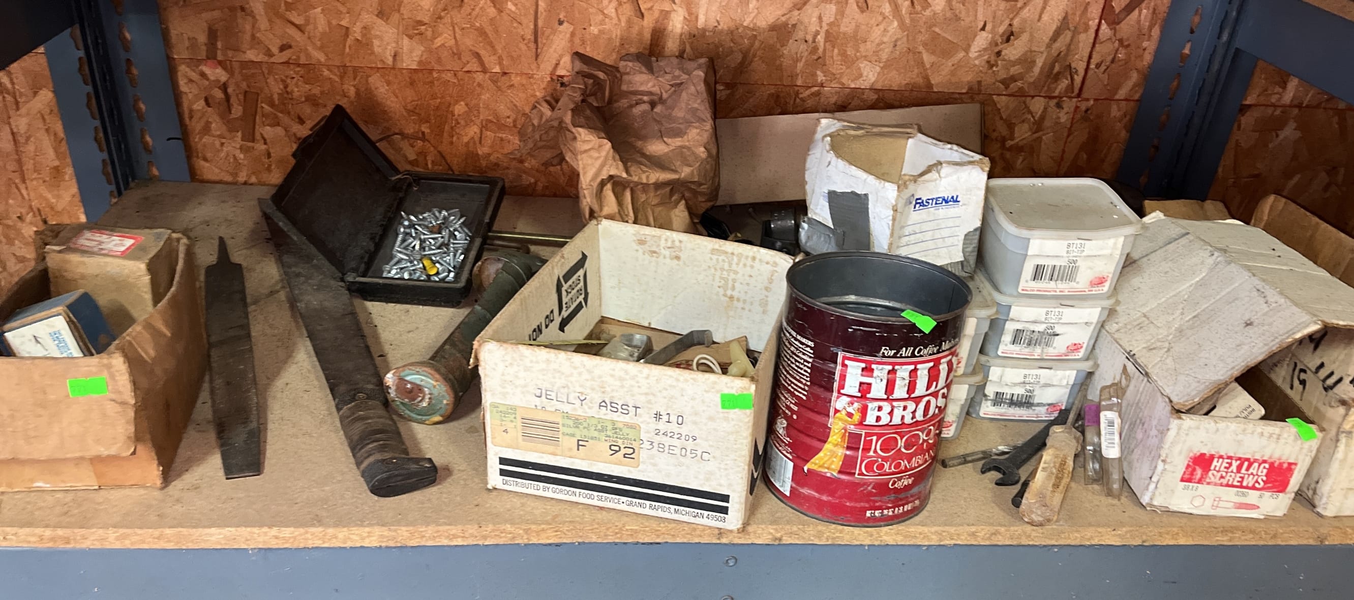 767 Toolbox, organizer with hardware, tools and misc contents of shelf