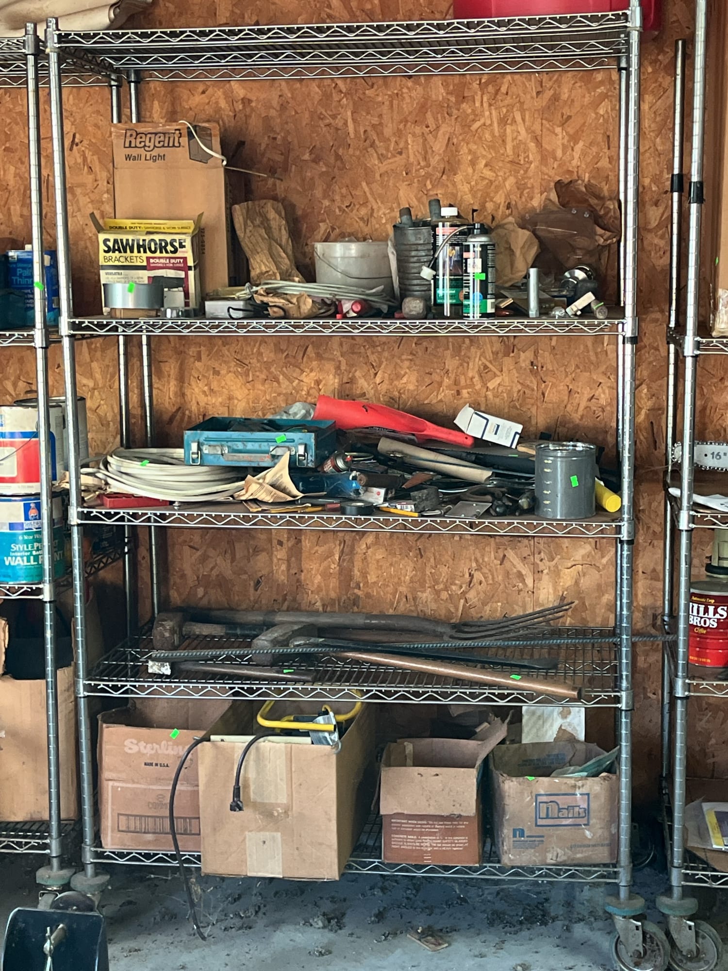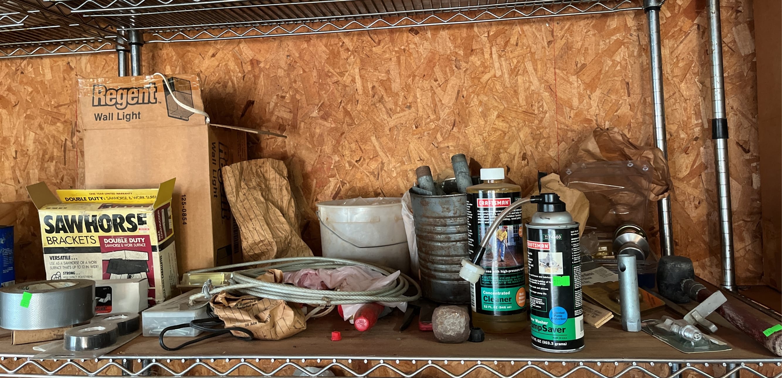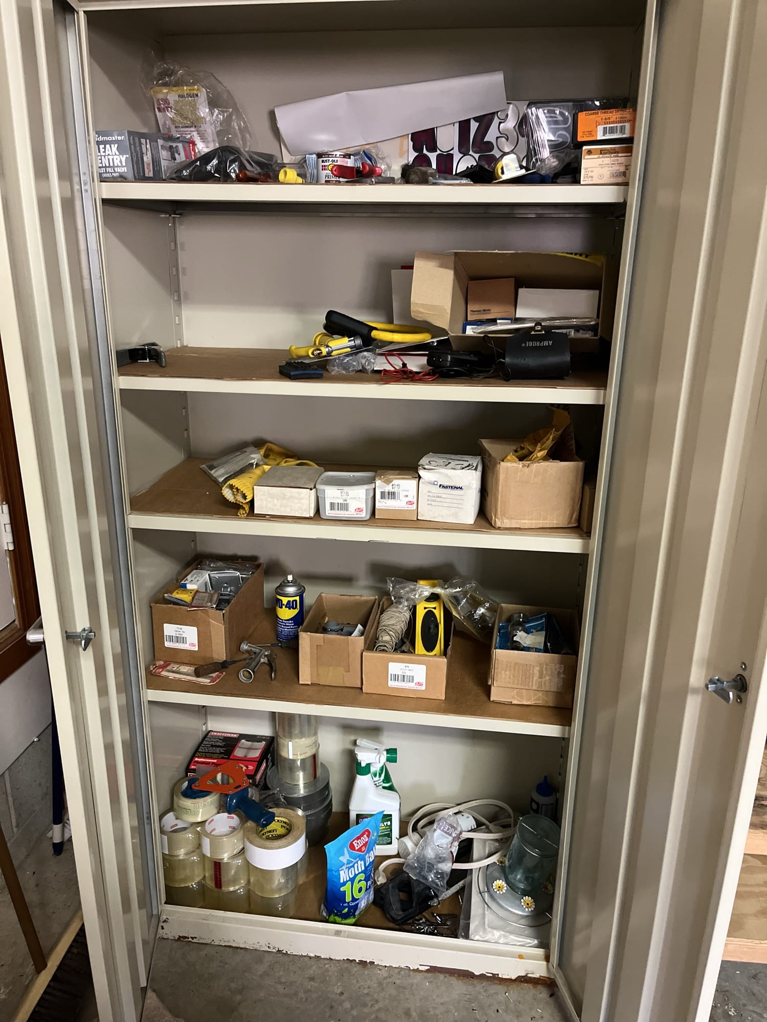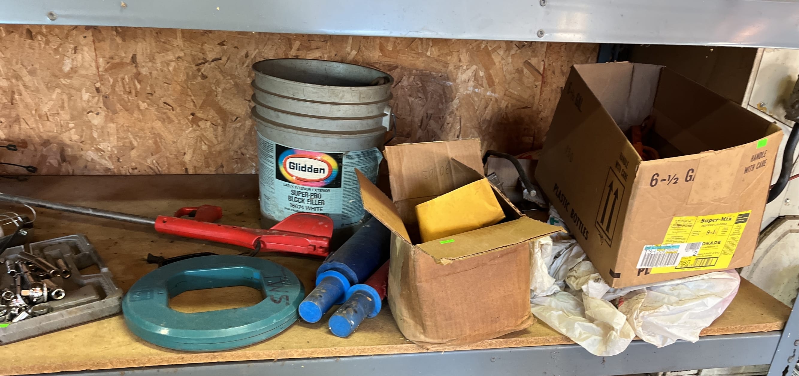 767 Toolbox, organizer with hardware, tools and misc contents of shelf