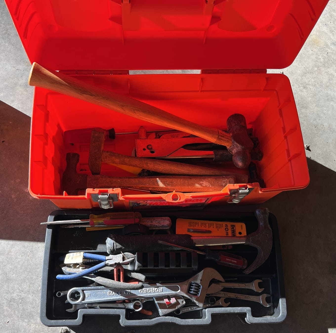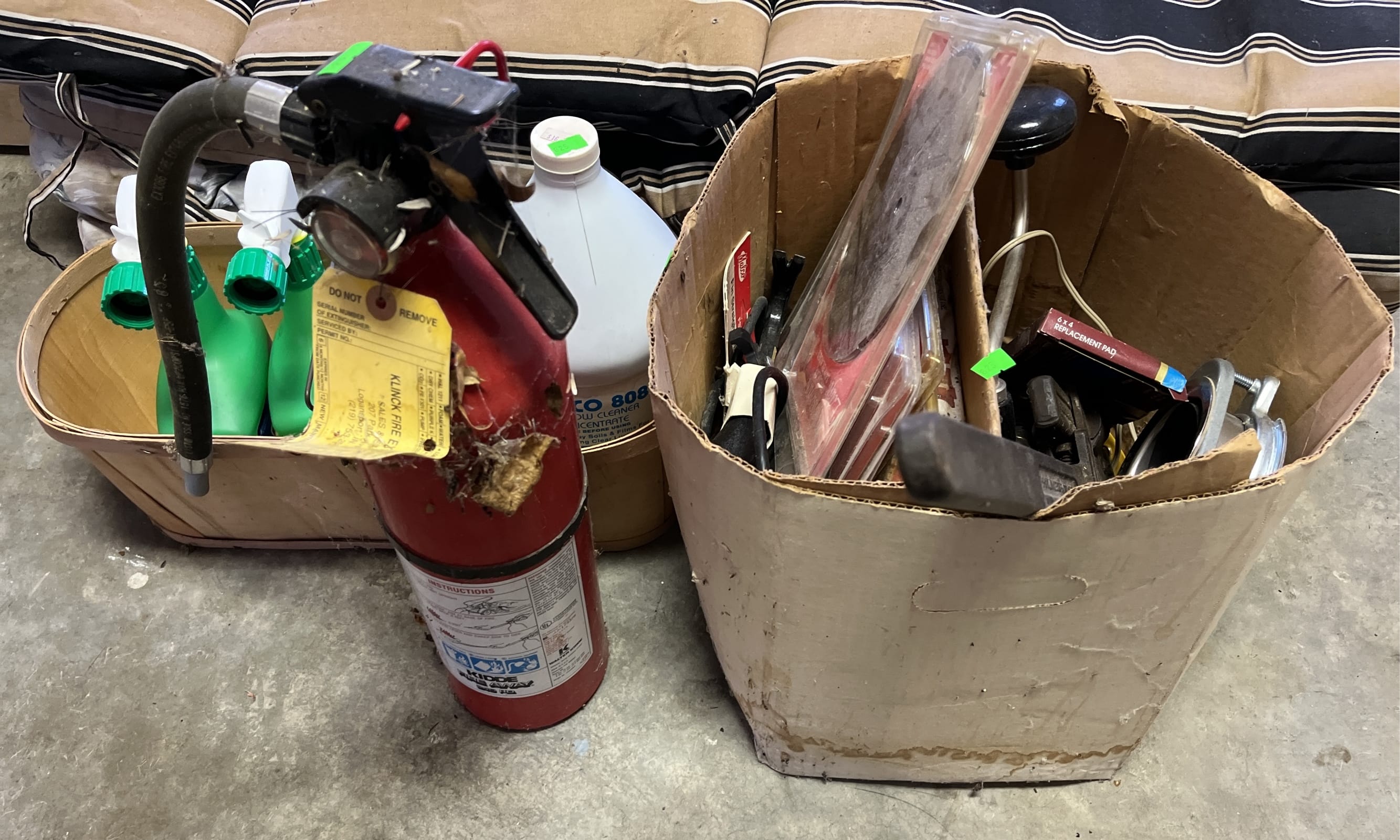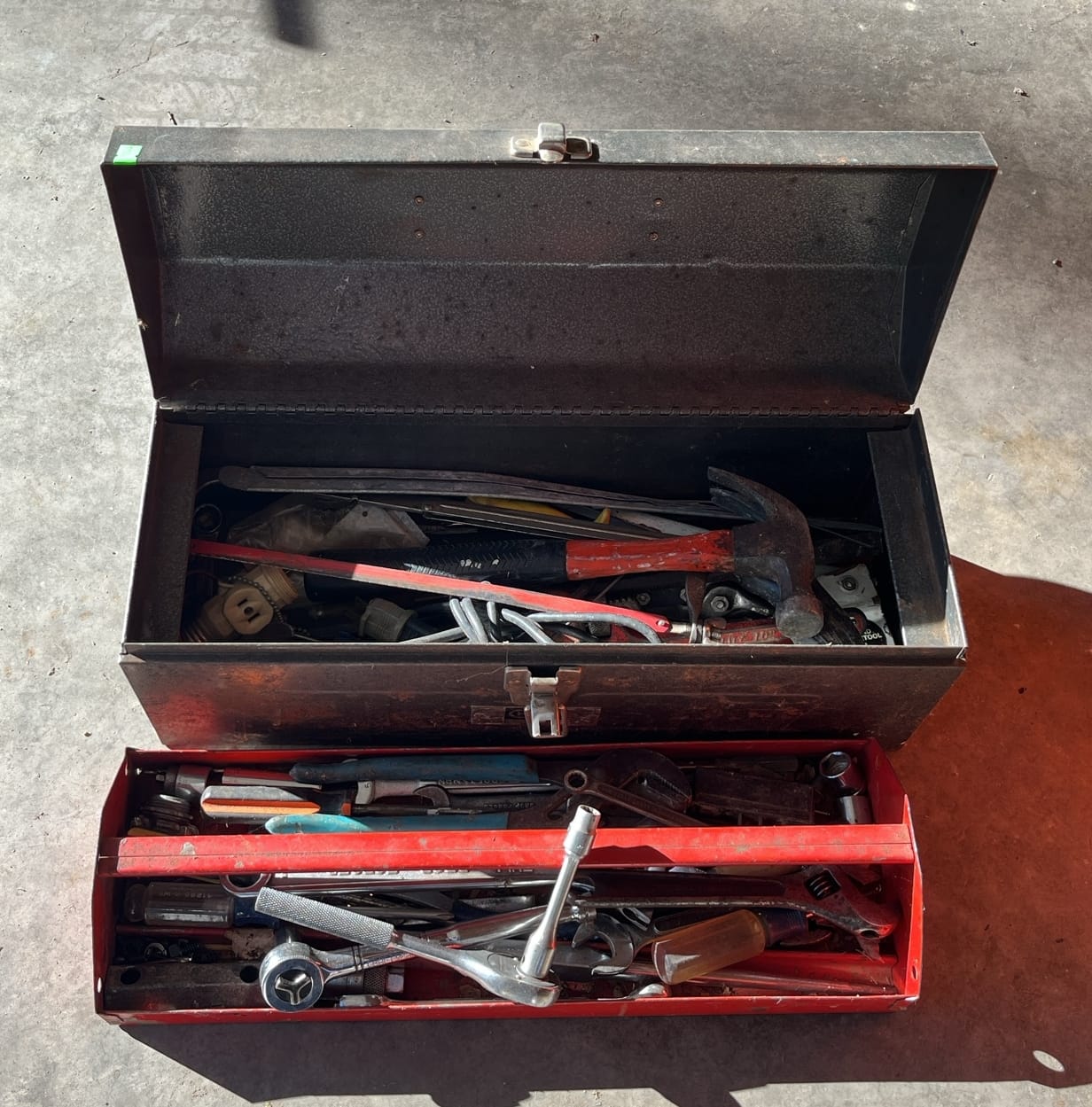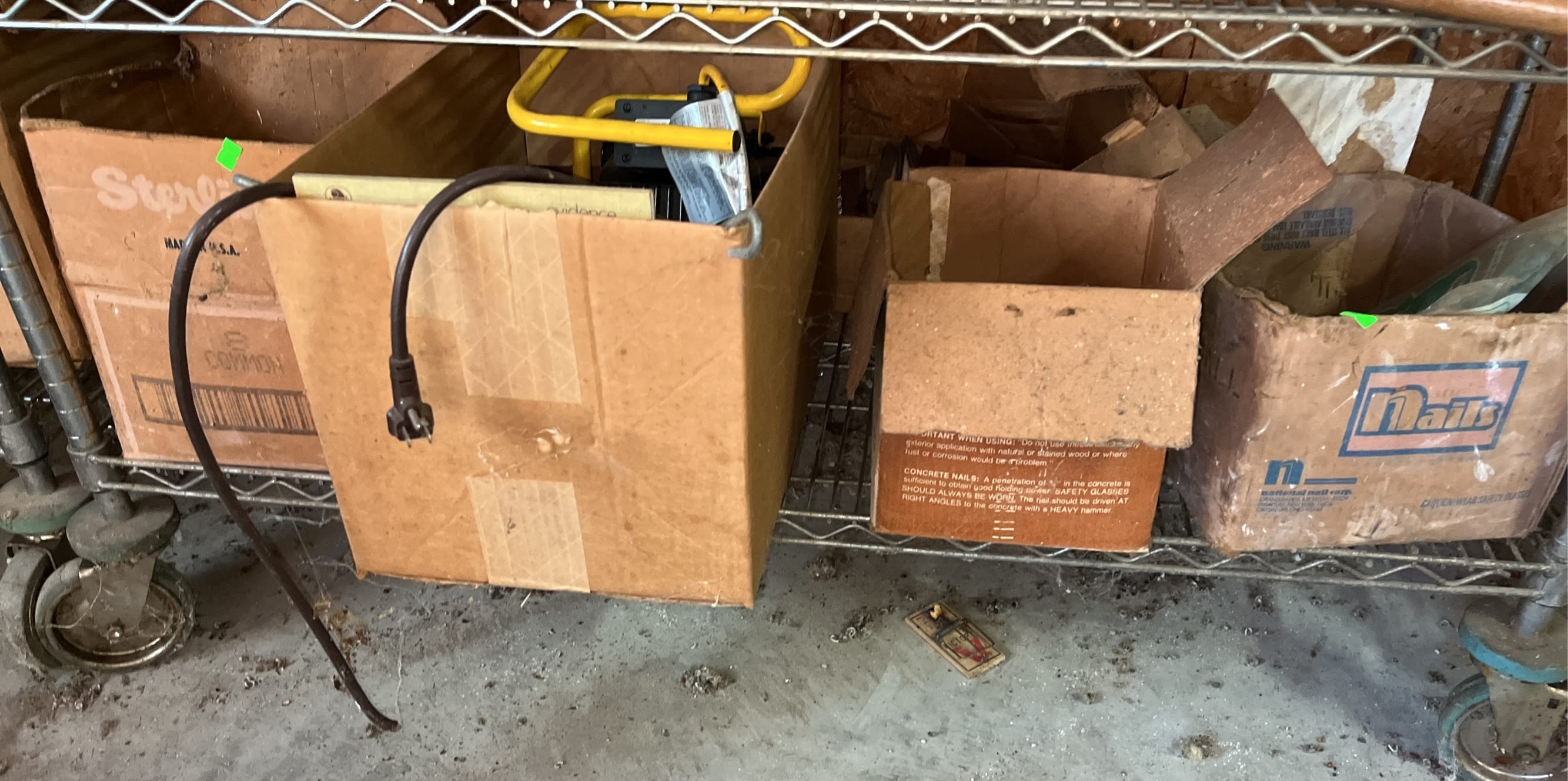 767 Toolbox, organizer with hardware, tools and misc contents of shelf
