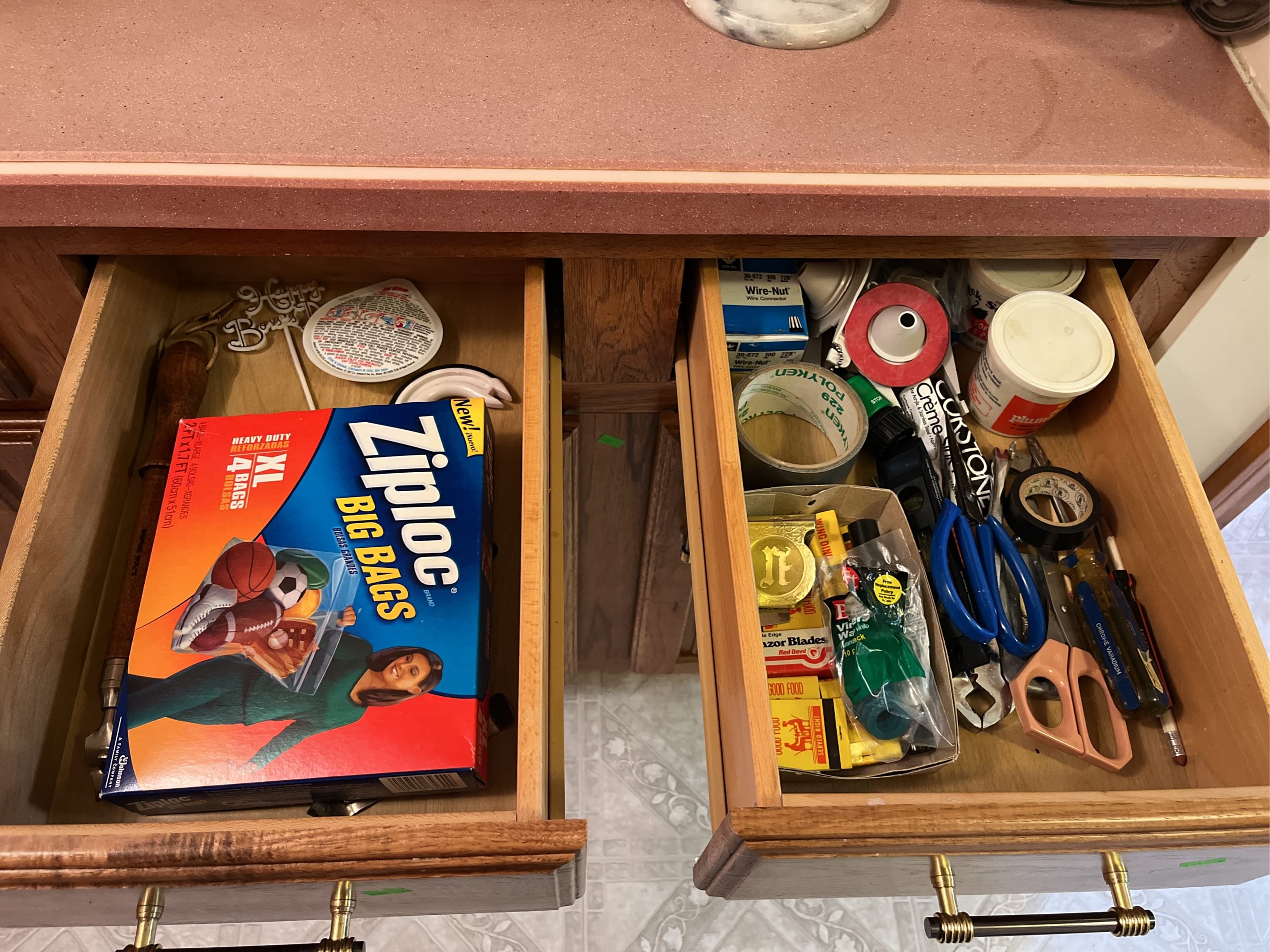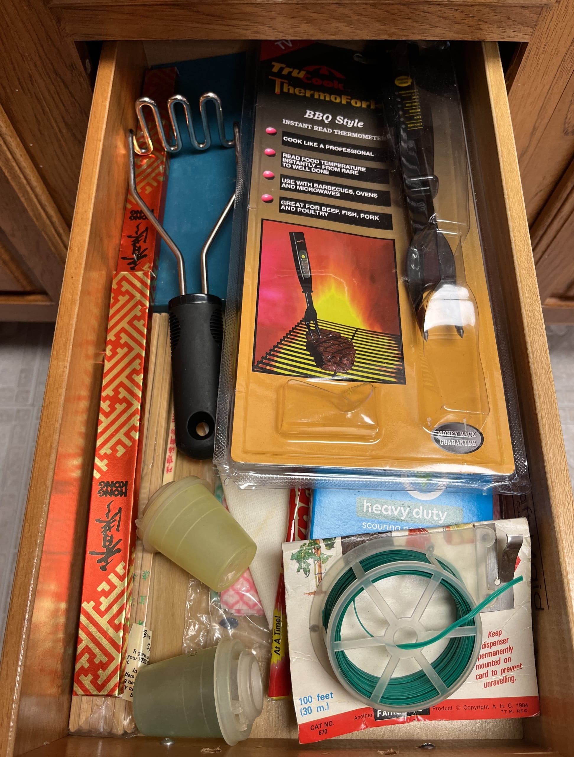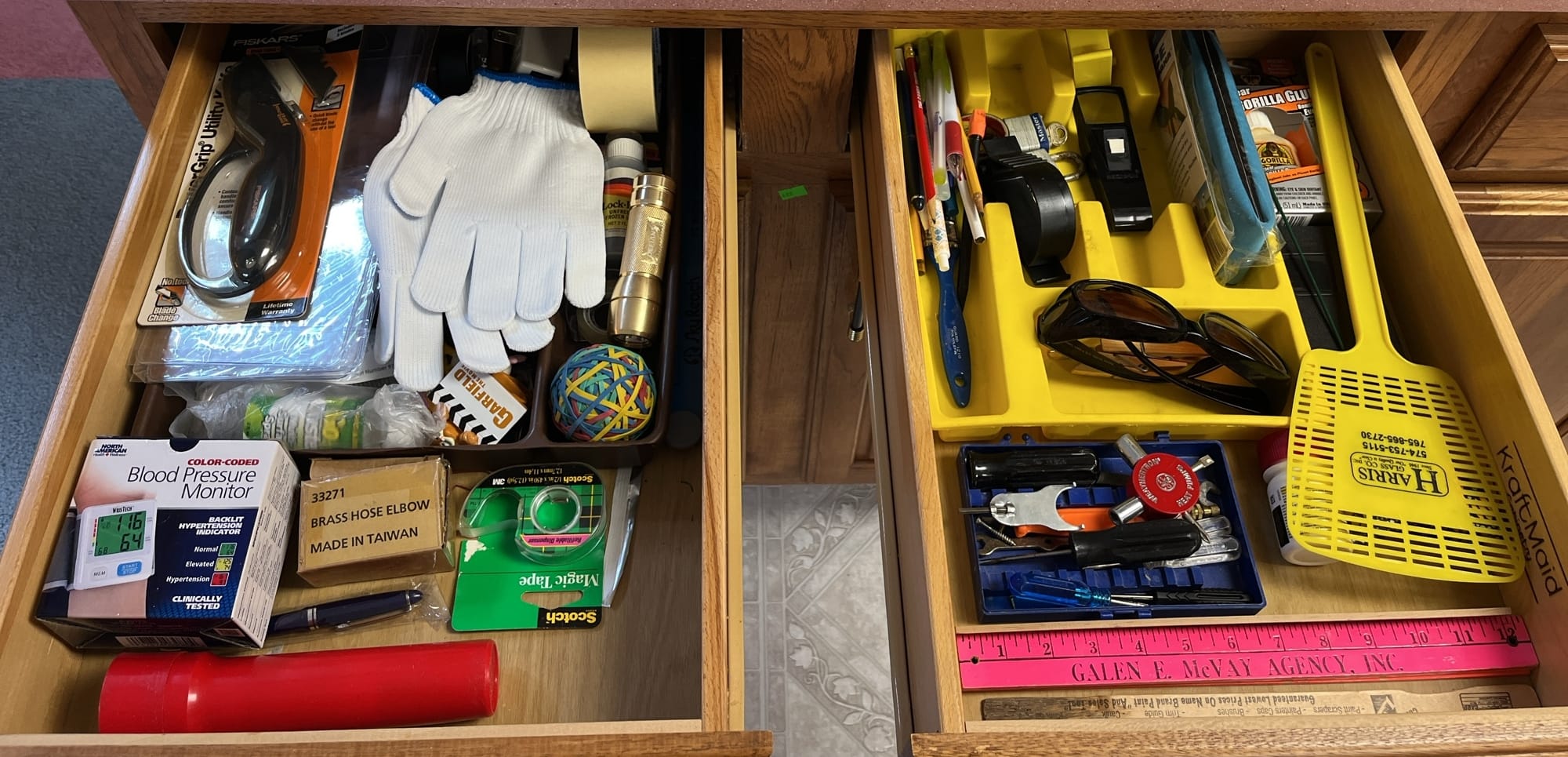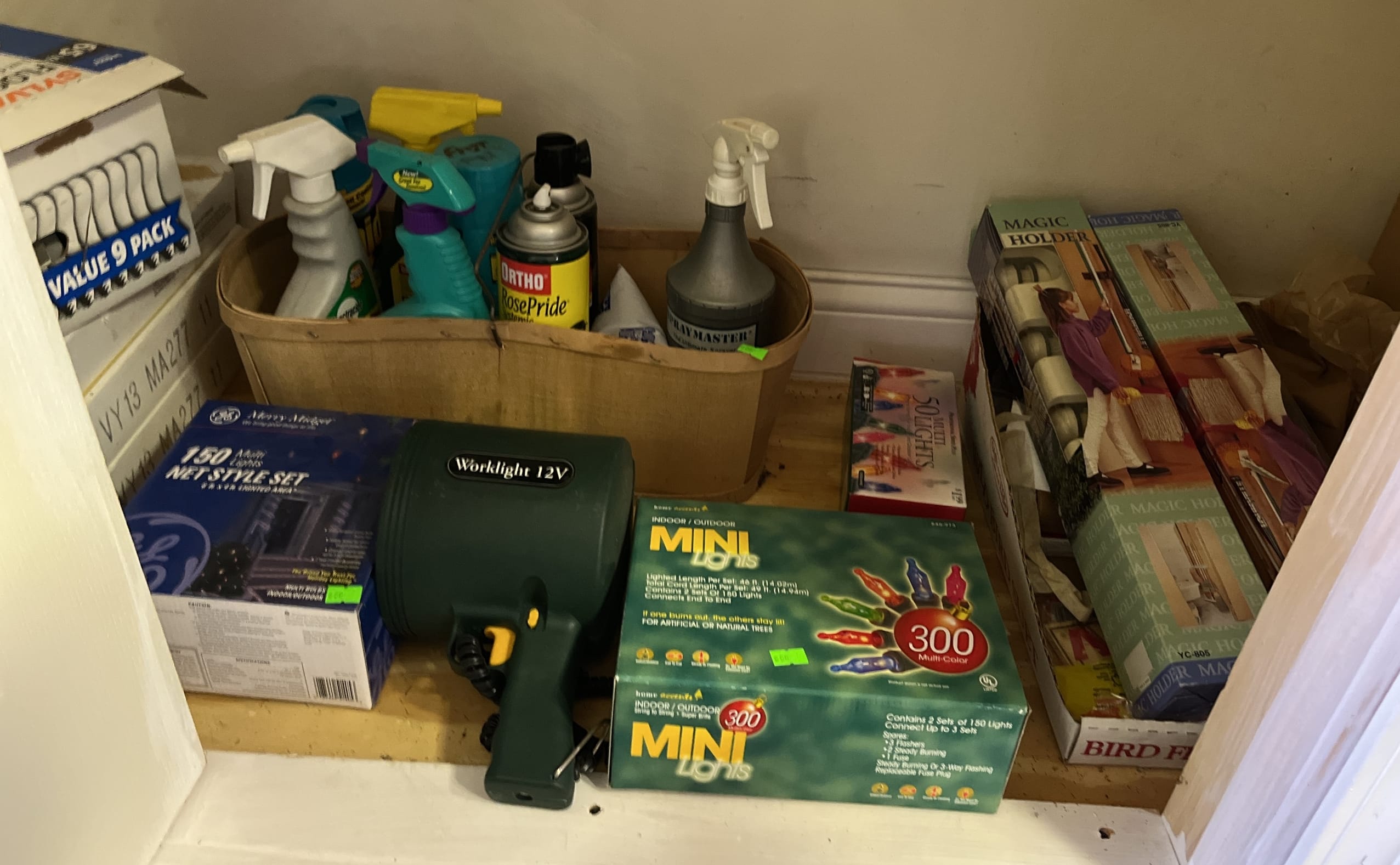 767 Toolbox, organizer with hardware, tools and misc contents of shelf
