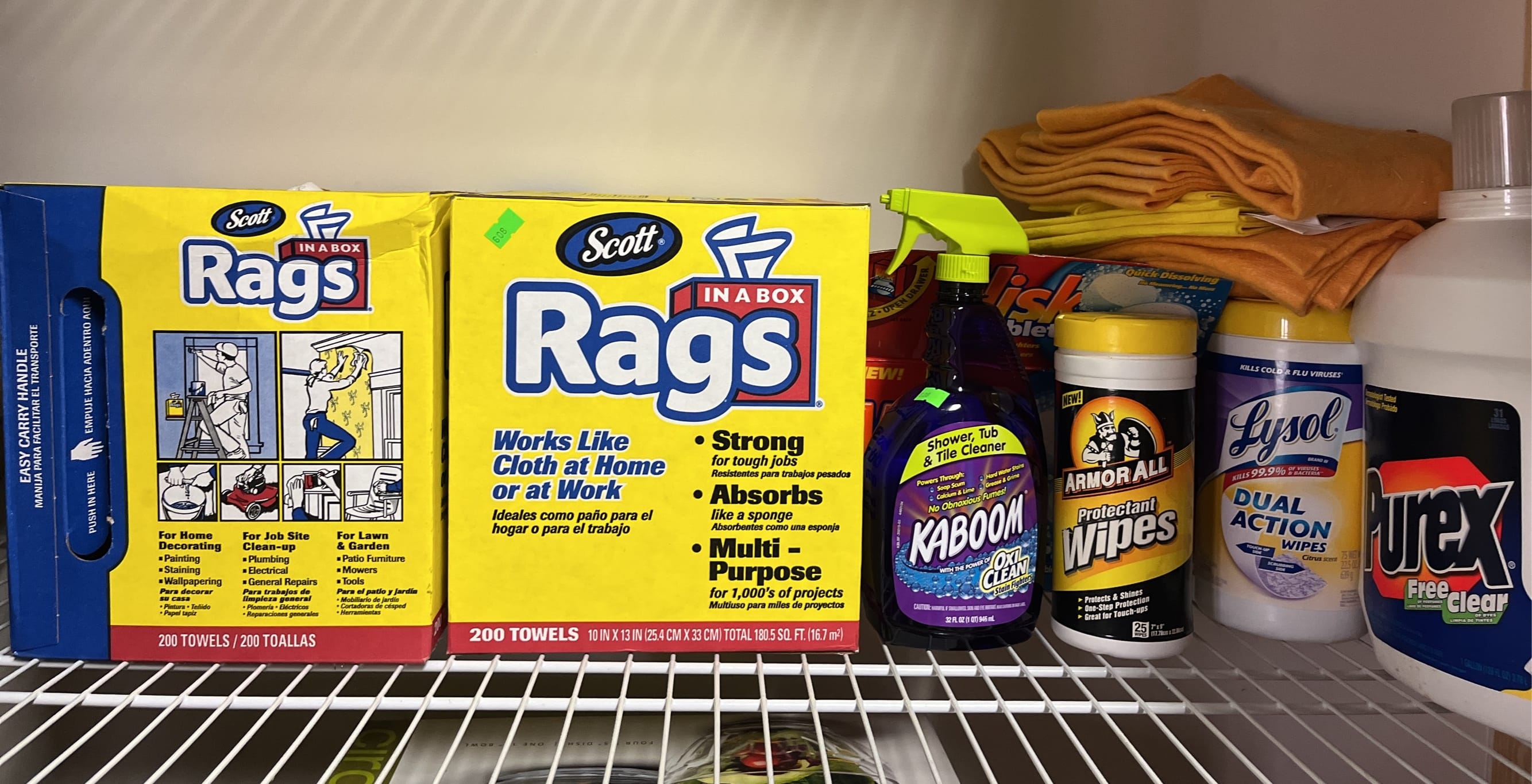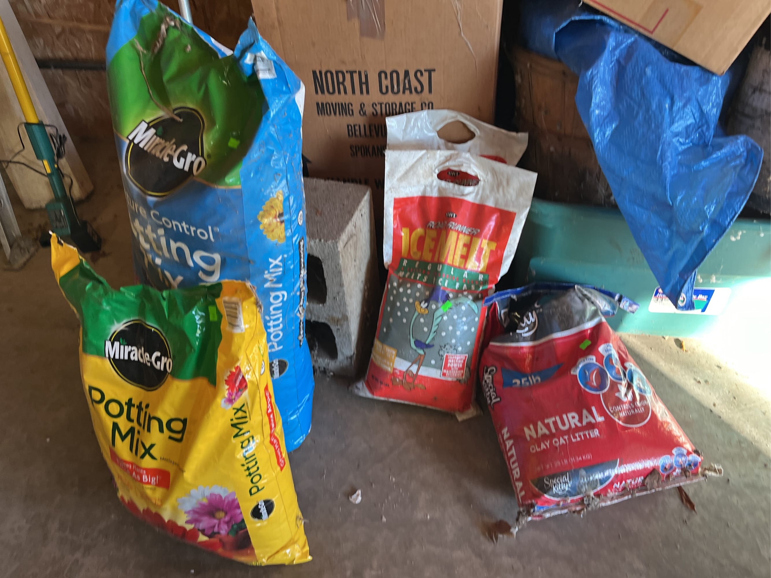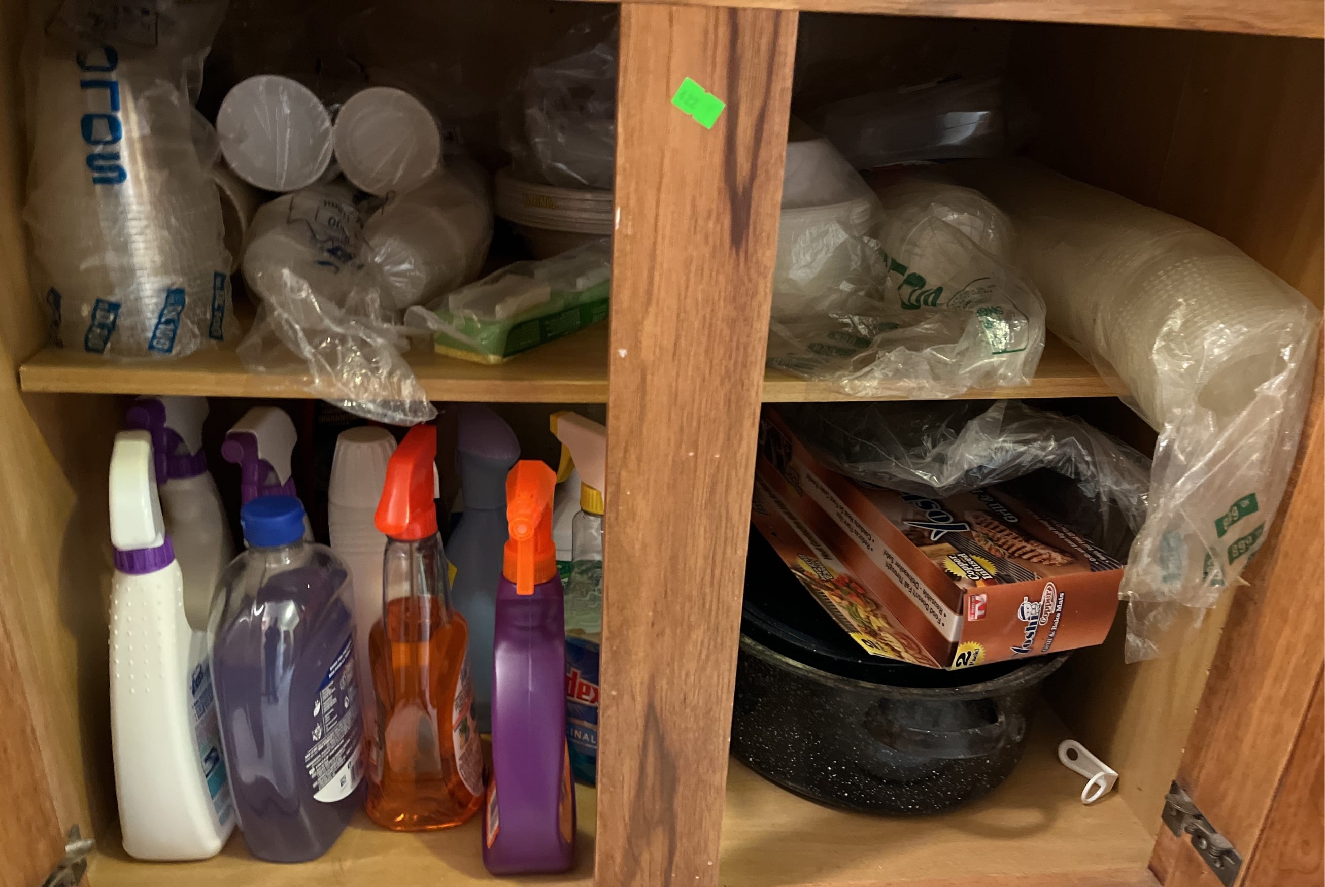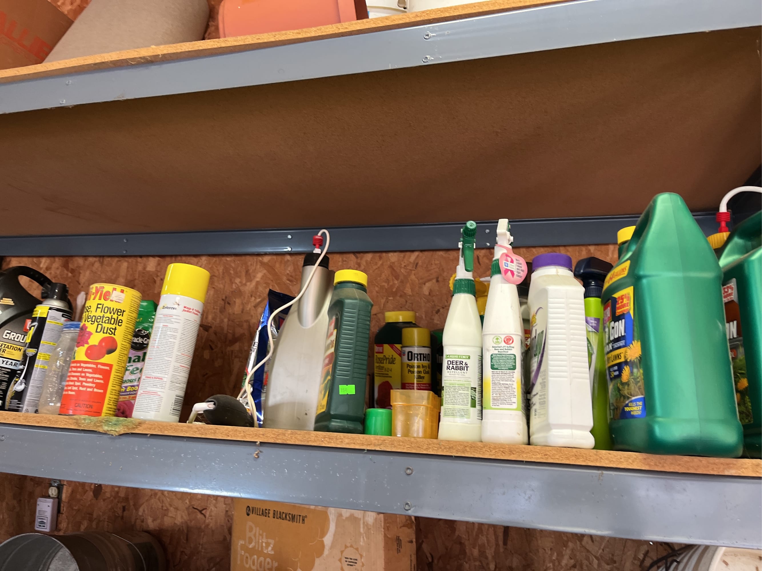 755 5 Gallon buckets, fire extinguisher, and misc. contents of shelf