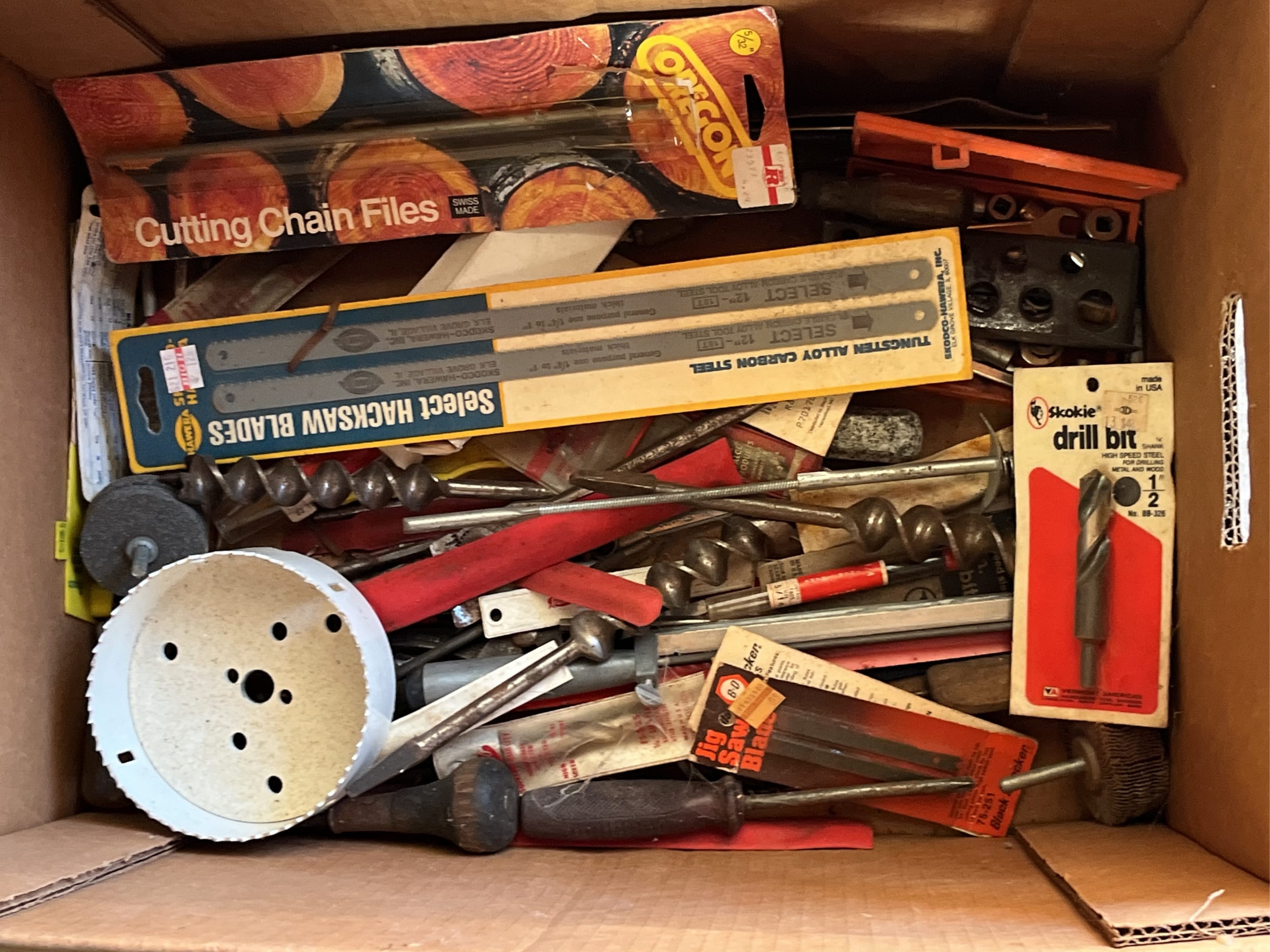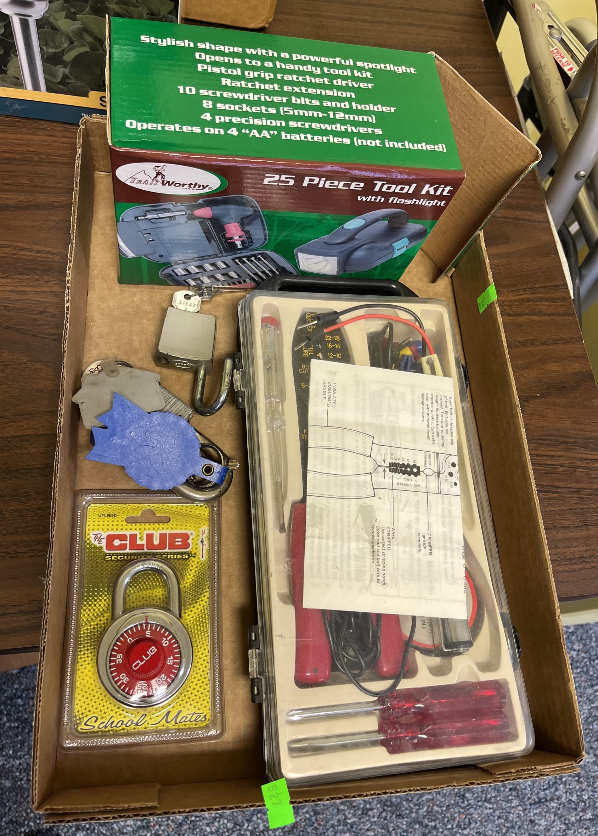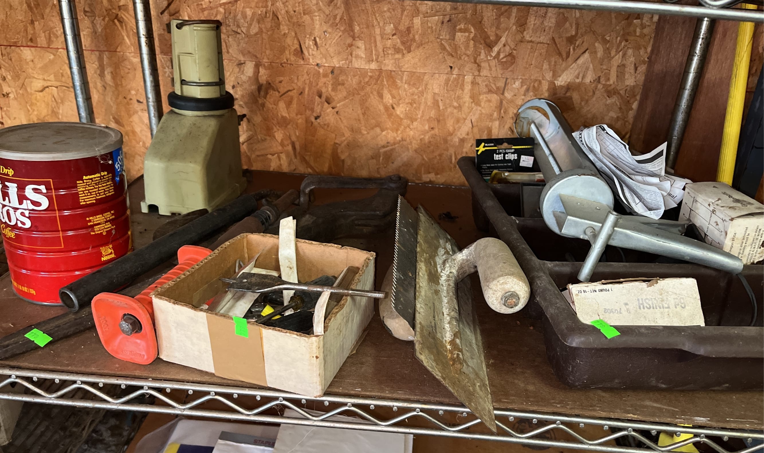 779 Tool assortment inc. caulk gun, drill bits and hardware
