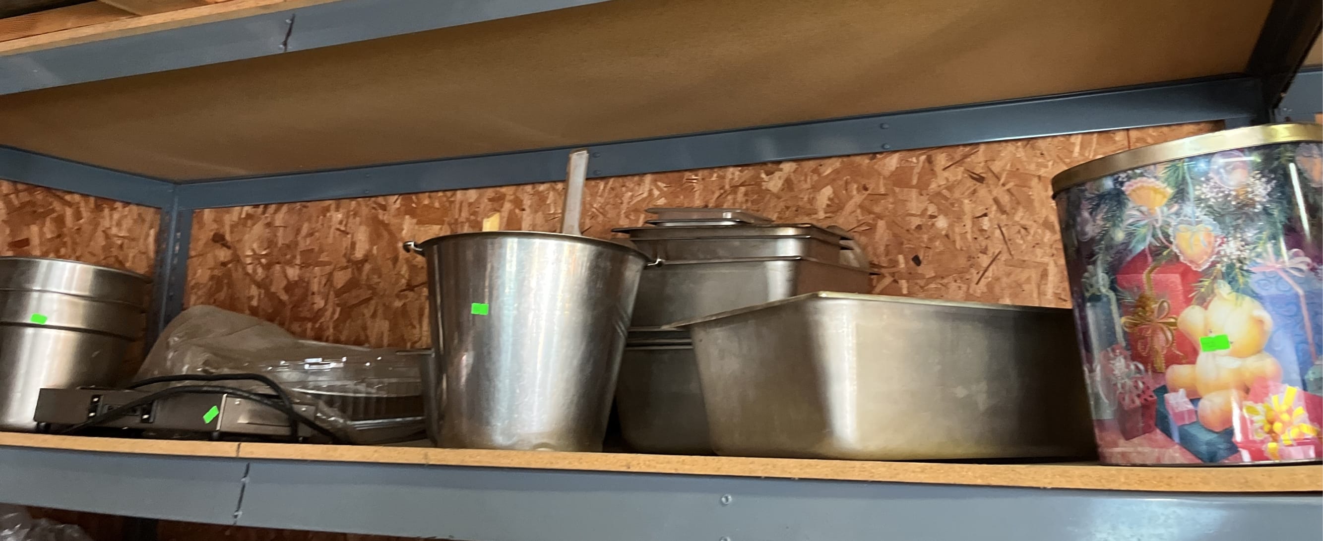 763 Bunn warmer, stainless restaurant pans, bucket and misc