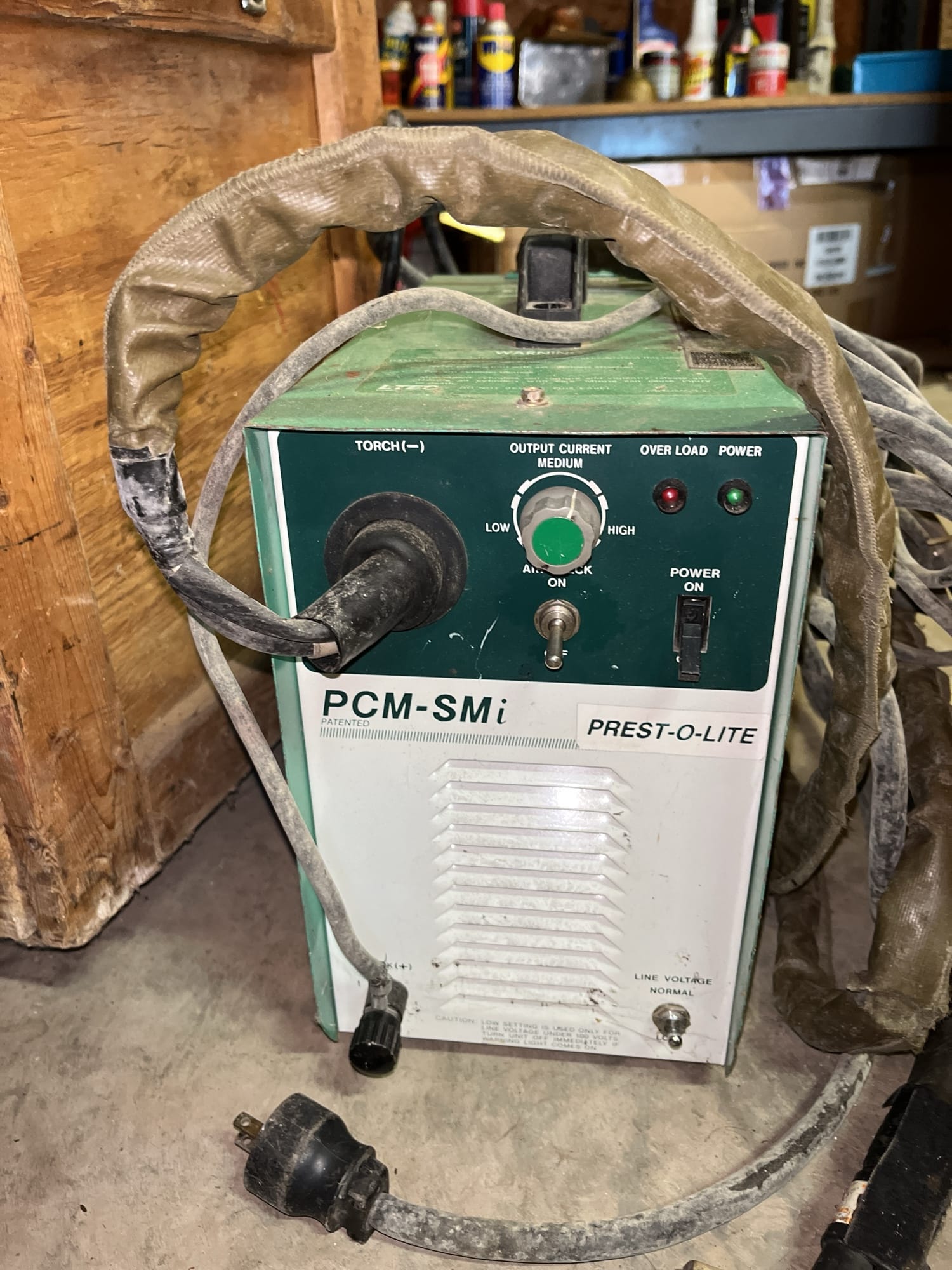 773 Prest-O-Lite PCM-SMi plasma cutter with wood storage box on casters 16x24x20"