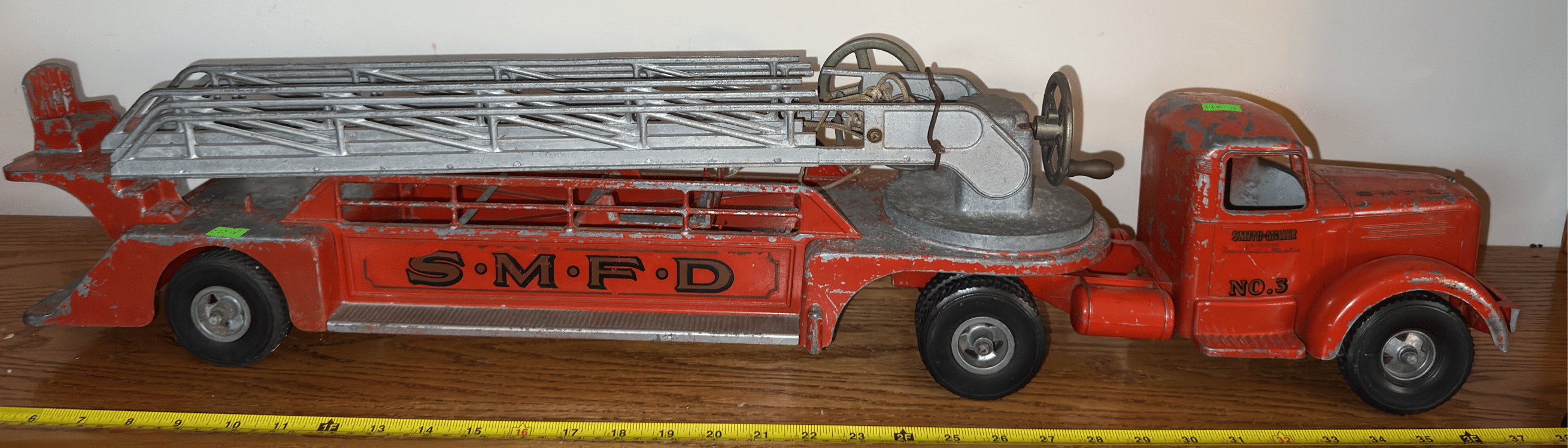 112 Smith & Miller Smitty toys Mack 2 piece fire truck - ladder has damage