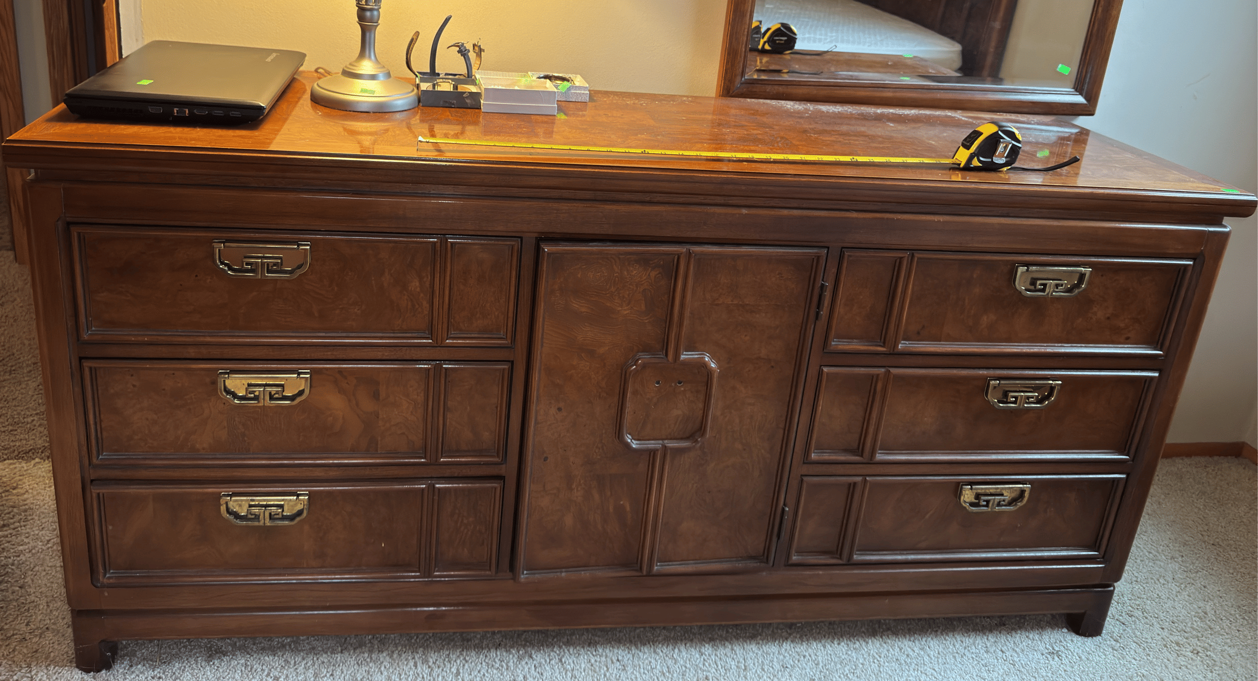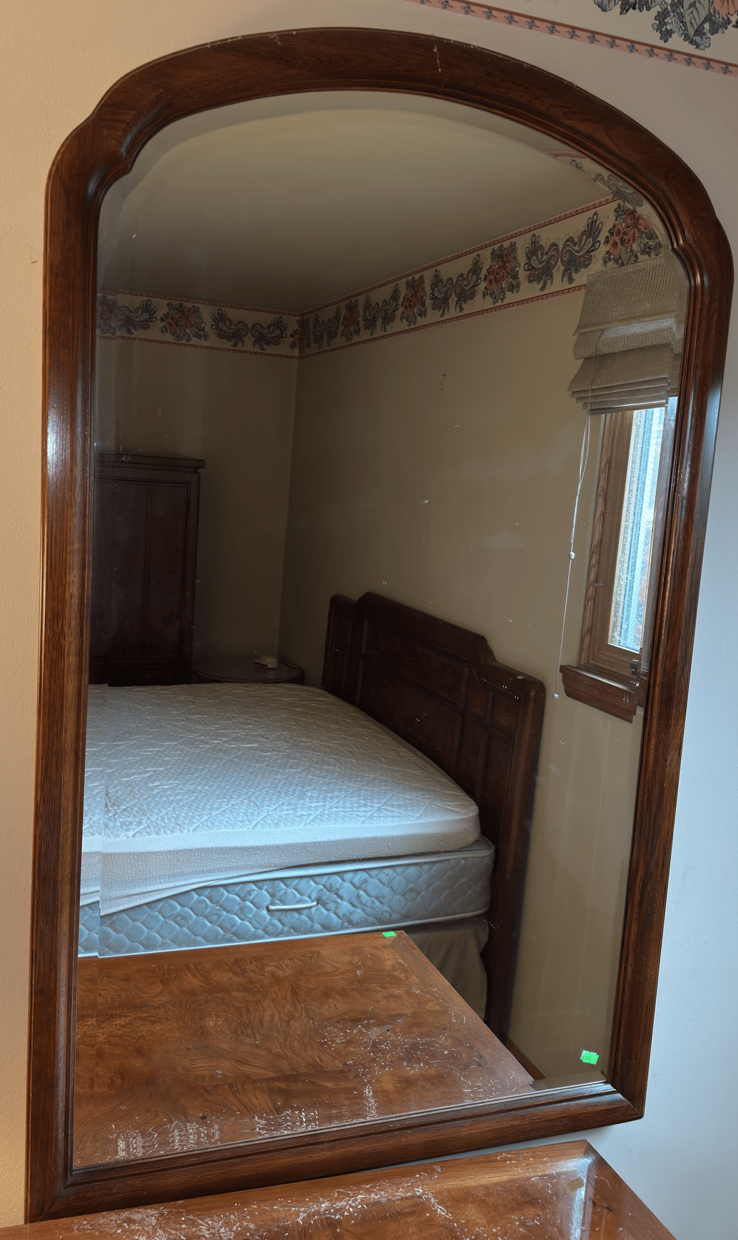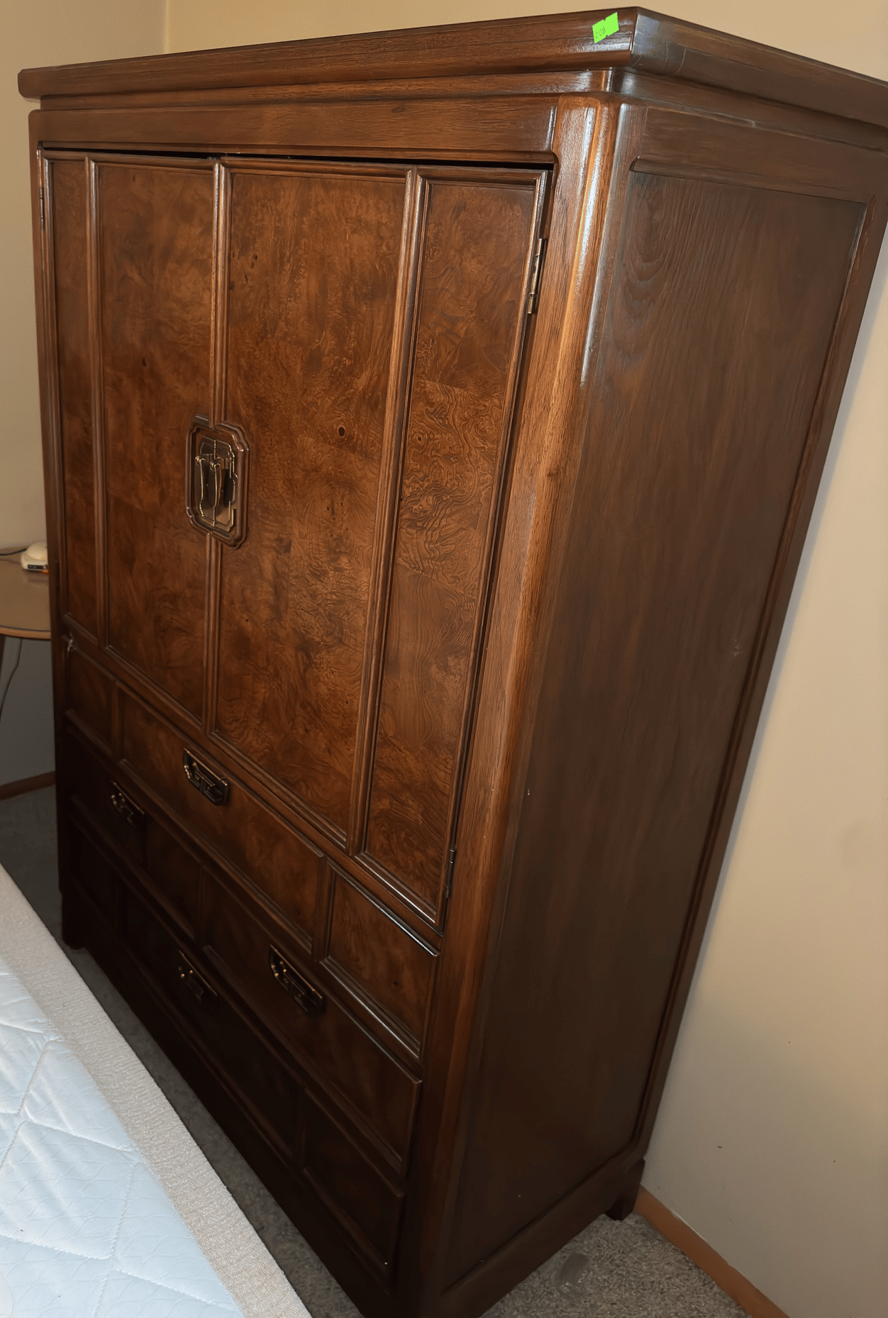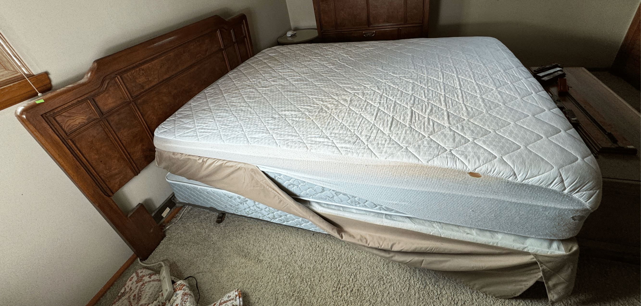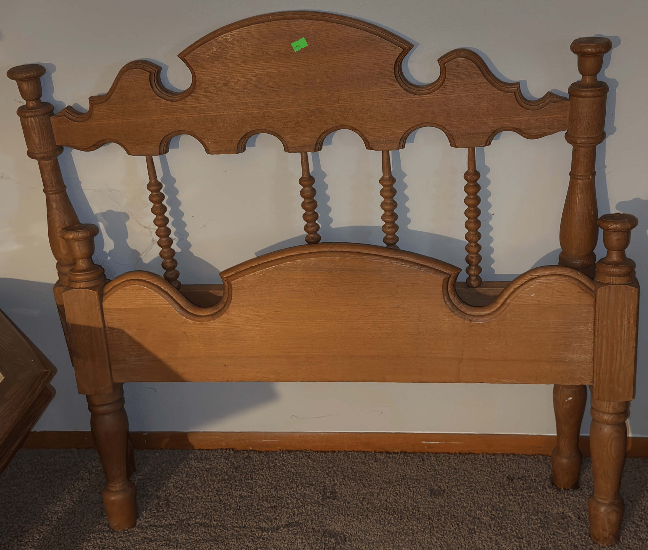 206 Thomasville Wood headboard and frame w/ mattress and box springs 62”