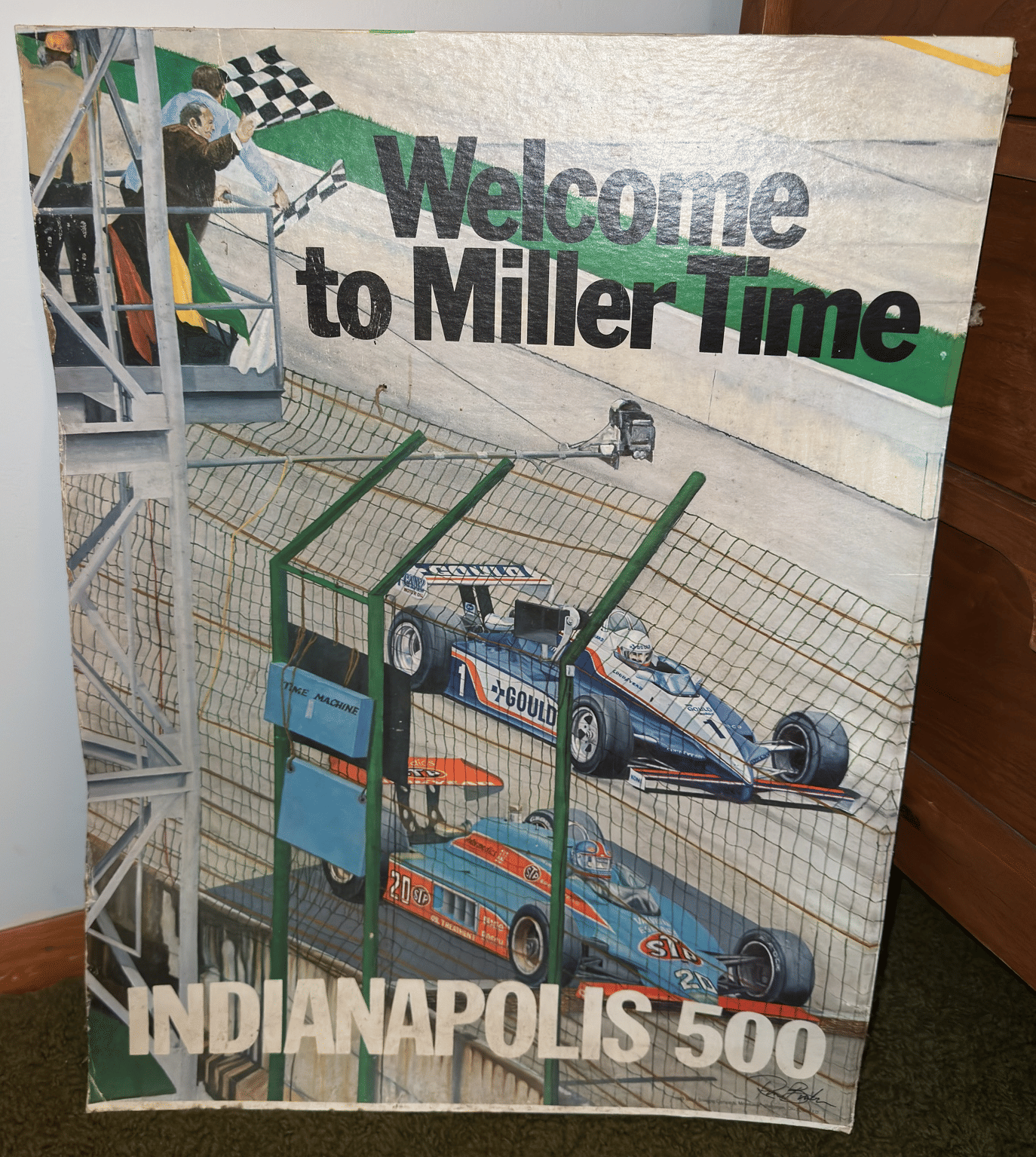 317 Indianapolis 500 Miller Time cardboard sign 18x23