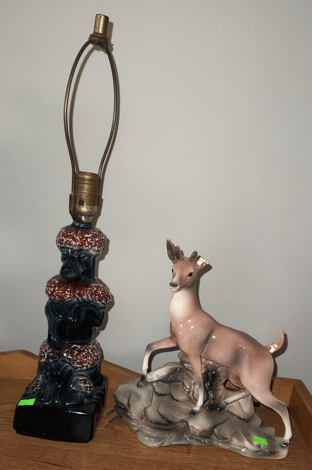 403 Ceramic Deer TV lamp with damage and dog lamp no cord or shade