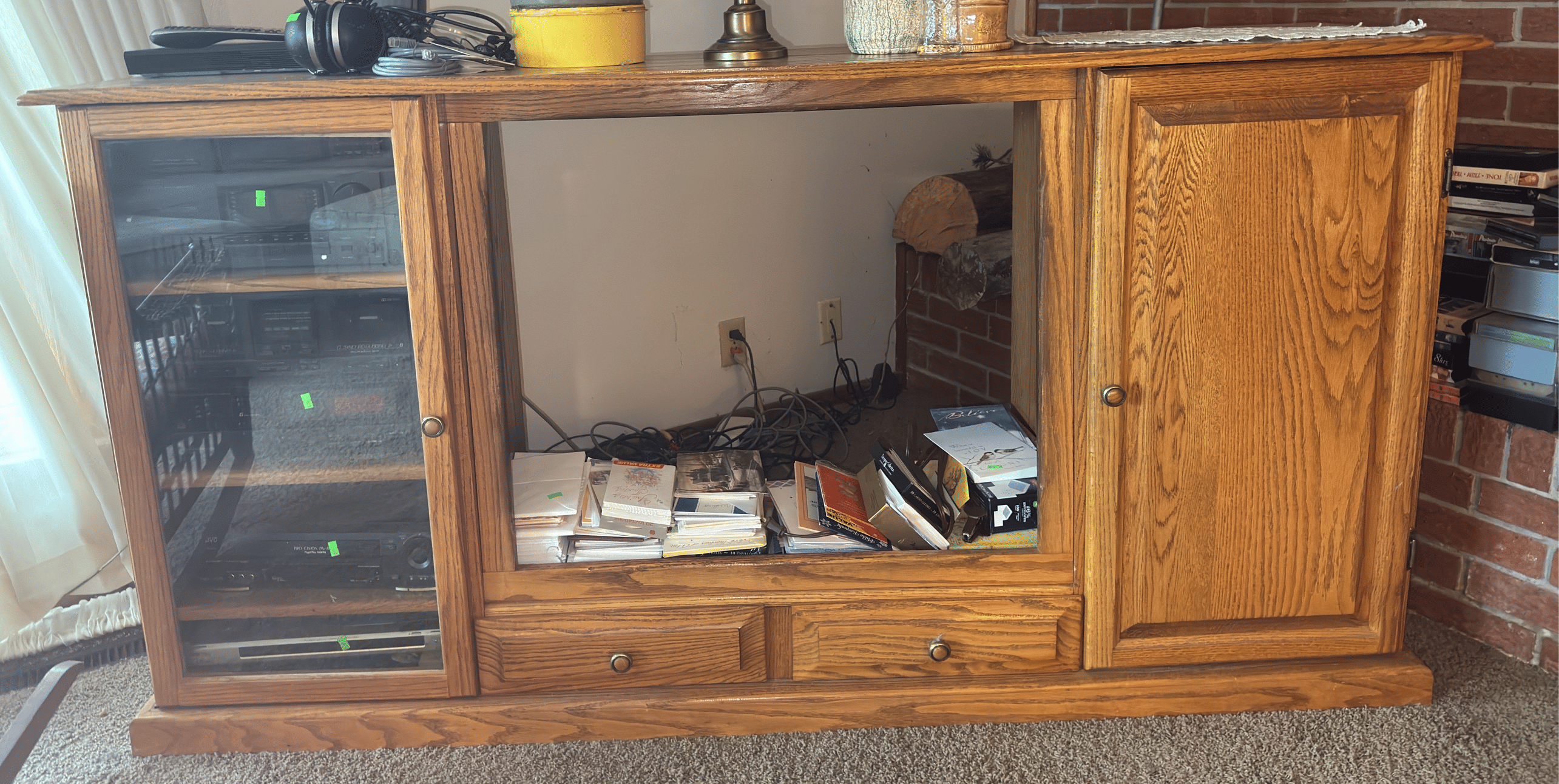 109 VCR, Zenith TV 20” with remotes, Cabinet 19x17x22"