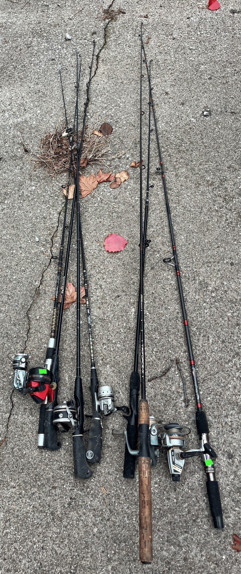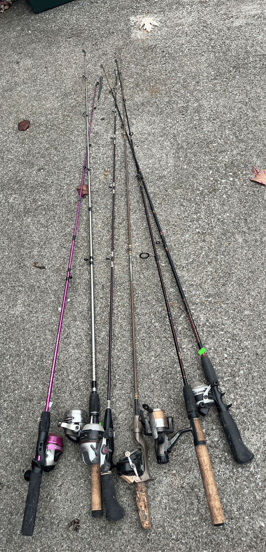 915 Triforce-X and Garcia fishing pole with reels, Zebco fishing pole Kmart, South Bend Raven, Pro Bear and Daiwa fishing poles and reels