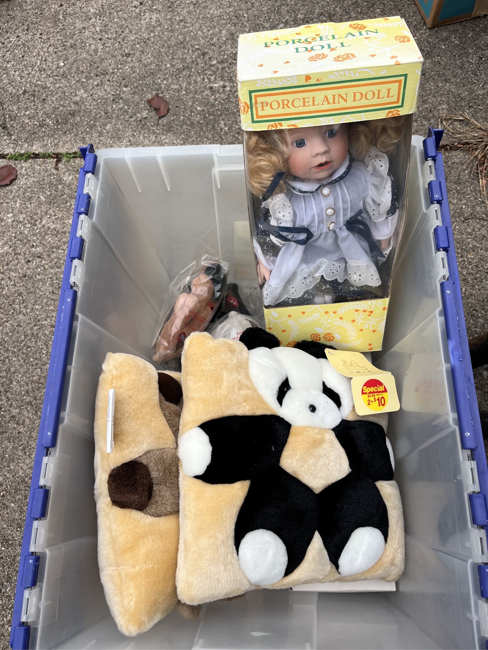 935 Bear pillows, Pound Puppies, porcelain dolls
