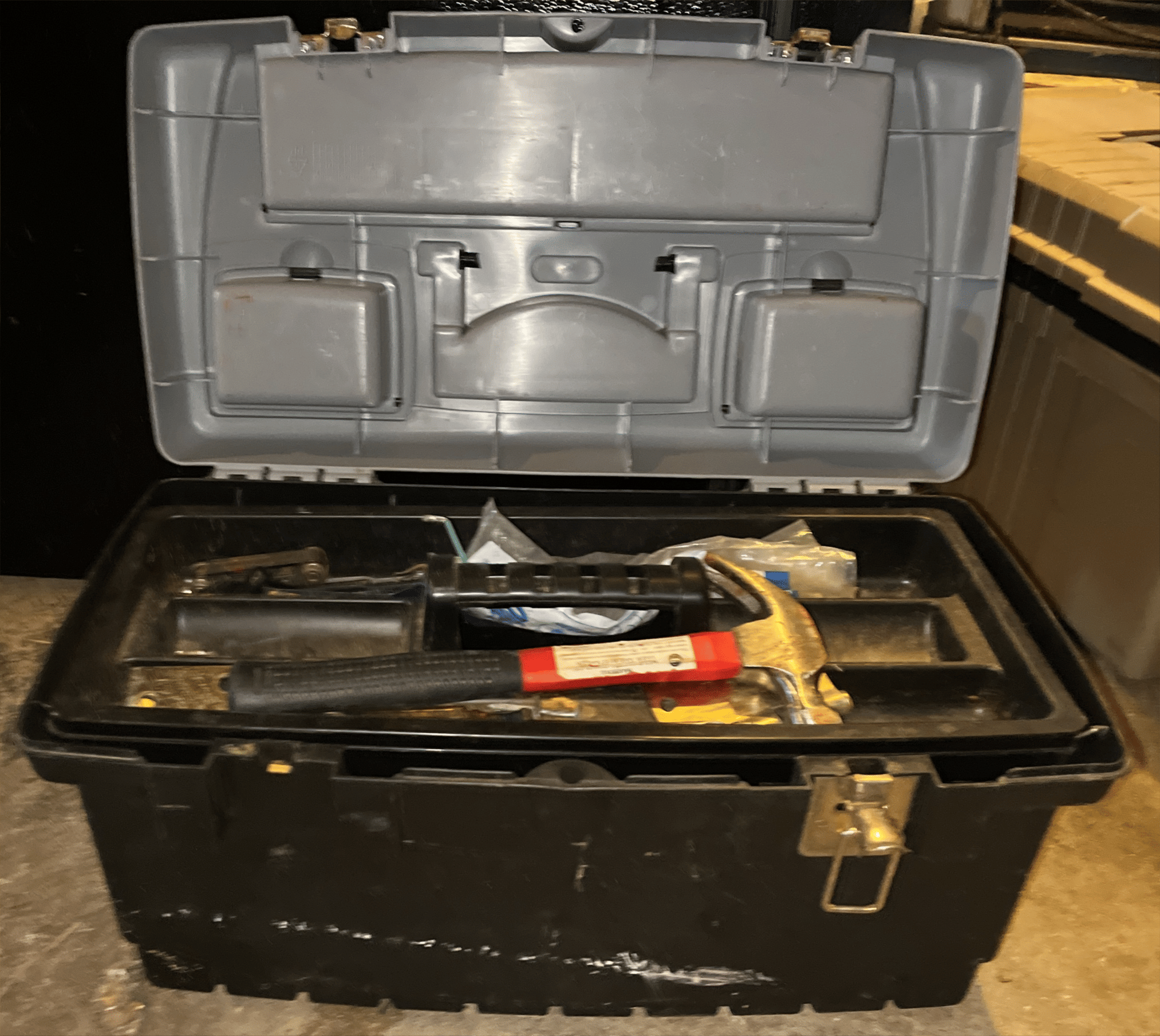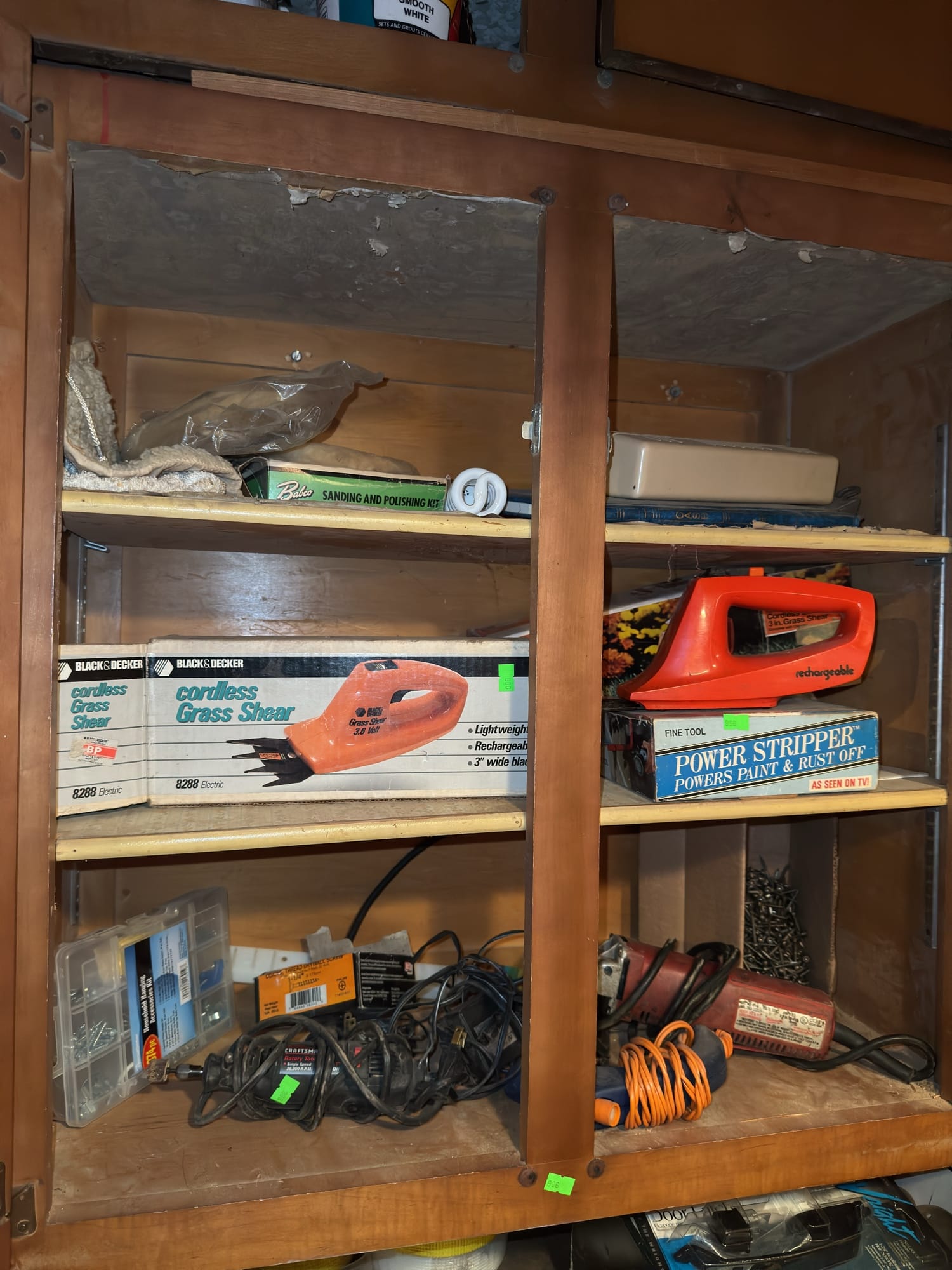 996 Grass shears, power stripper, rotary tool, Milwaukee 4” angle grinder, misc. contents of cabinet