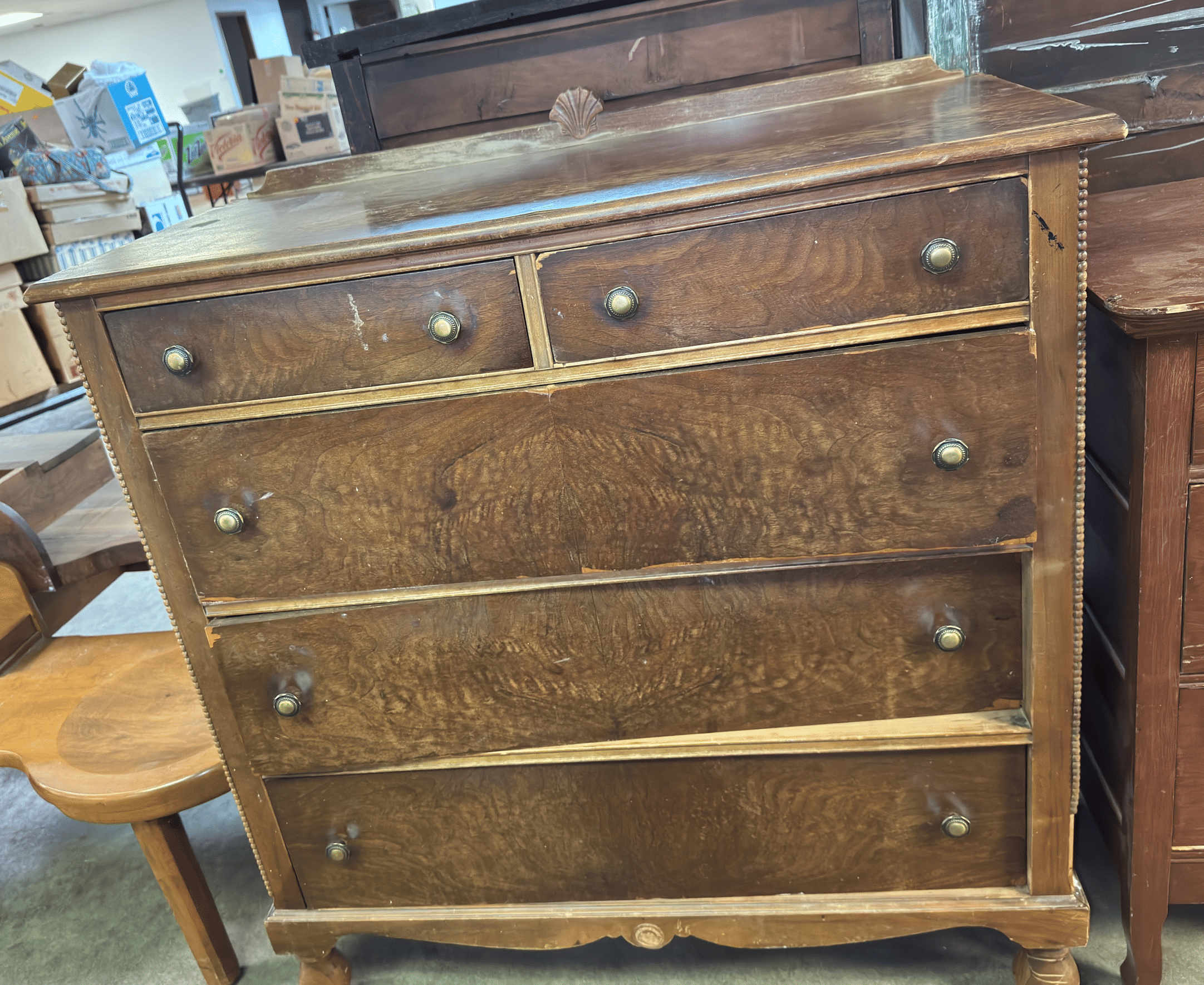 102 Wood chest of drawers (has damage) 32x20x49