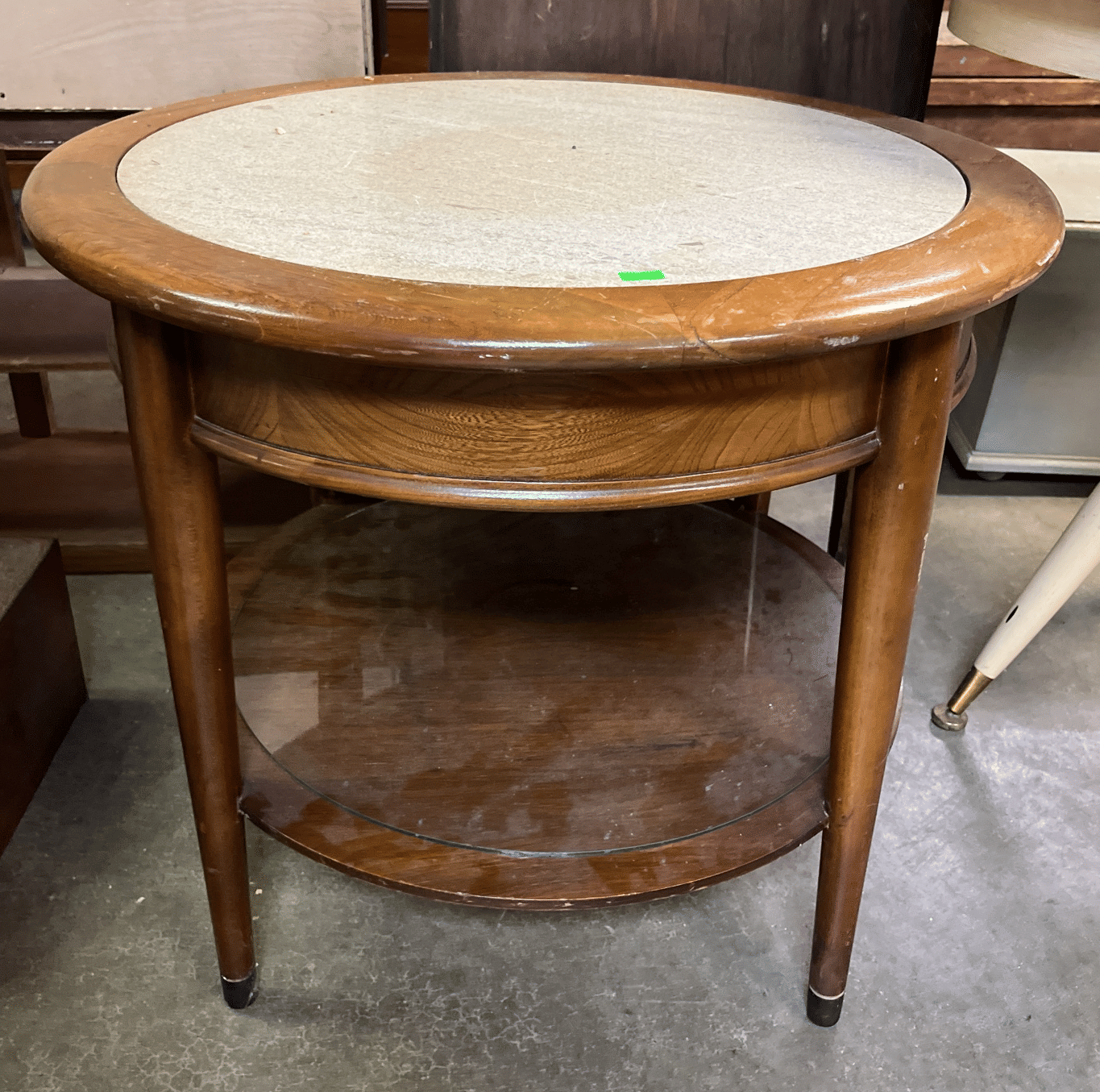 126 Round end table with marble inlay 26x22