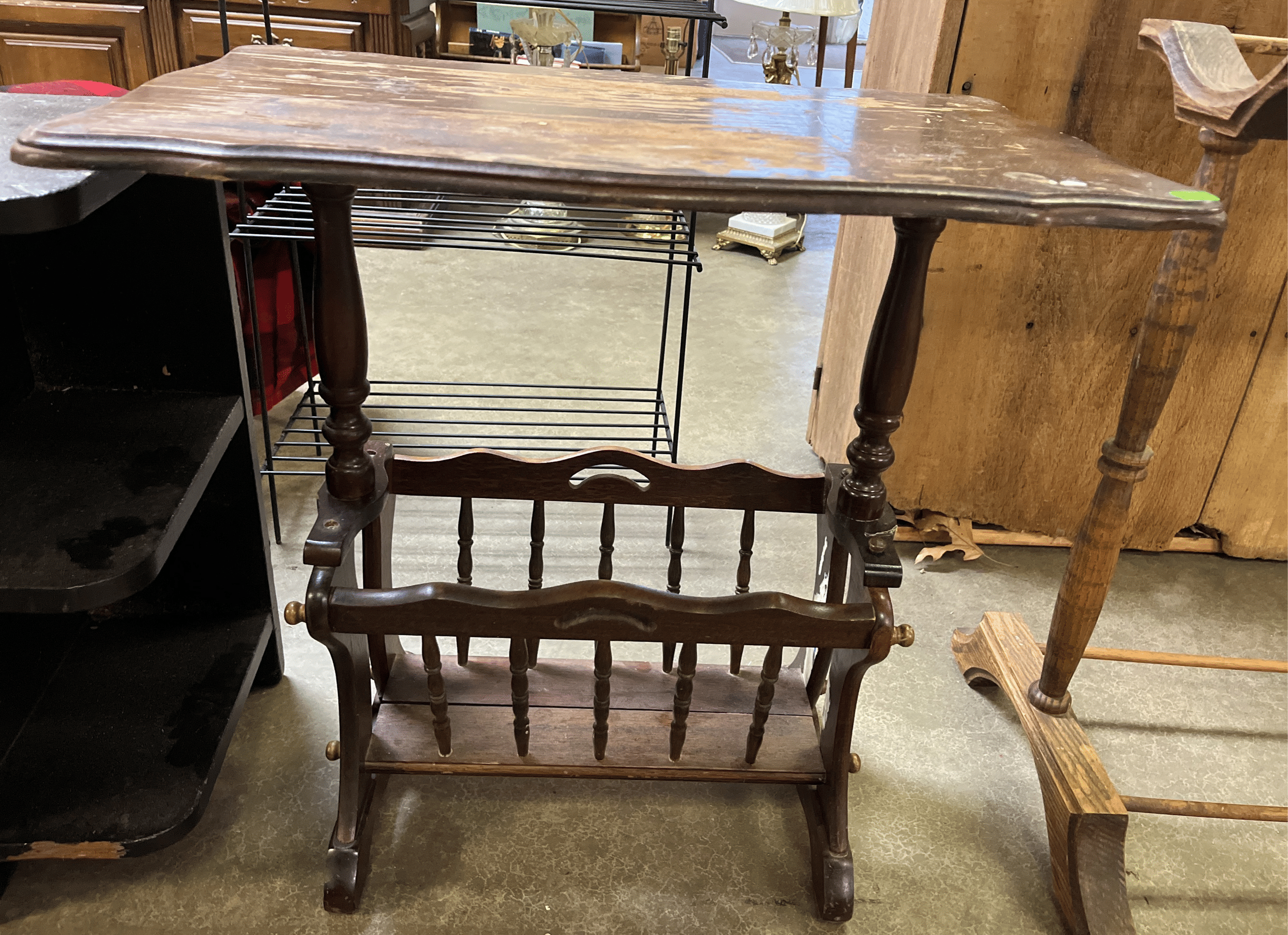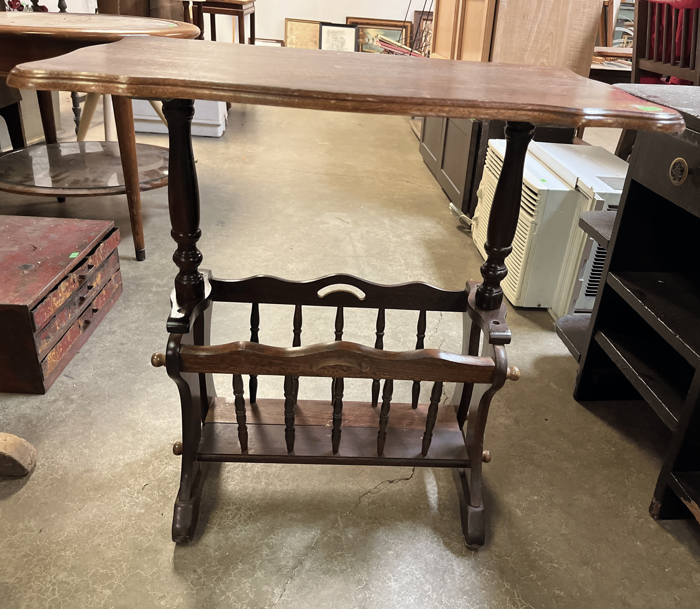 136 Magazine rack end table (finish damage) 24x15x24