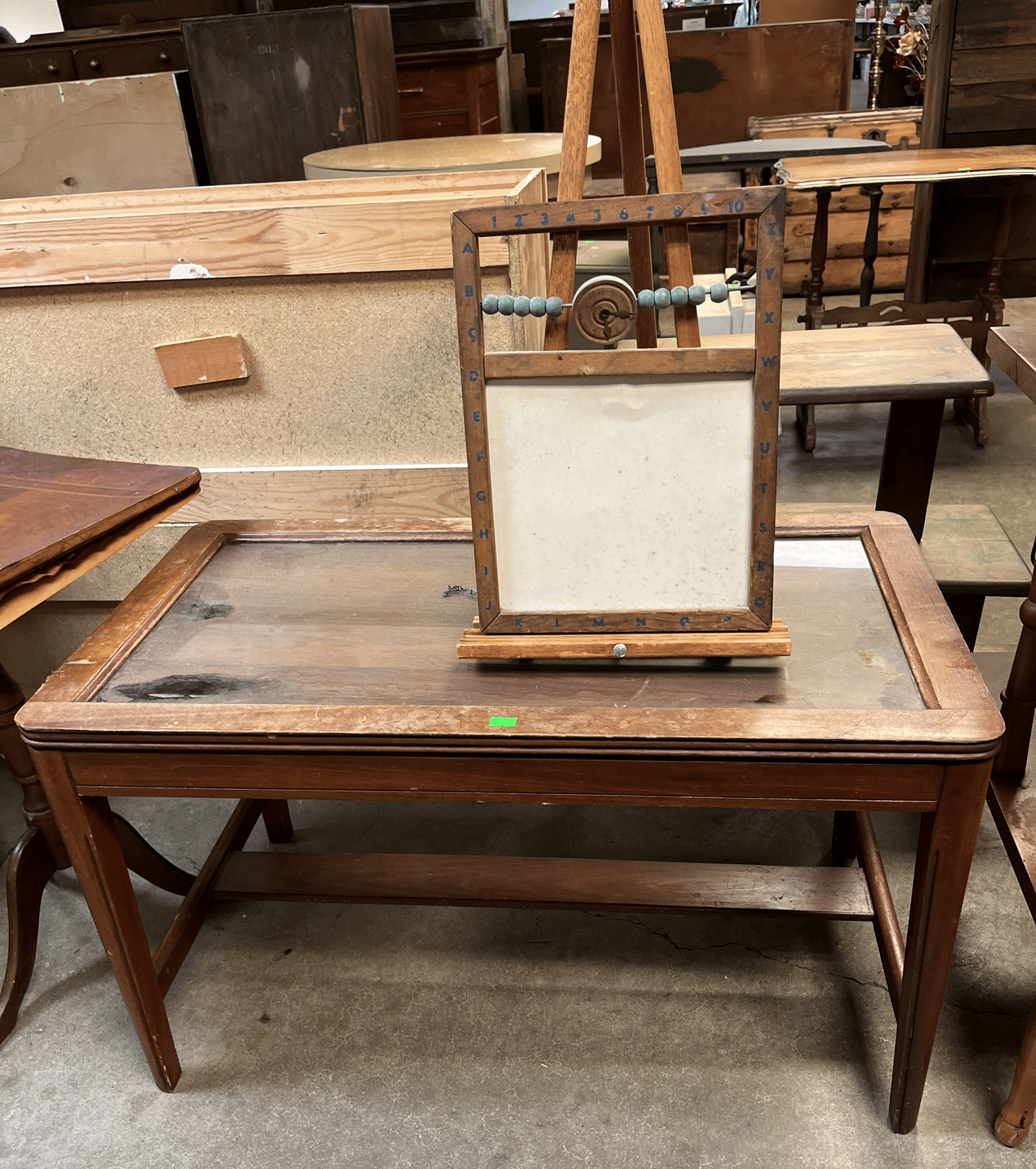 146 End table (needs repair) 31x17x18" with easel and children's chalkboard