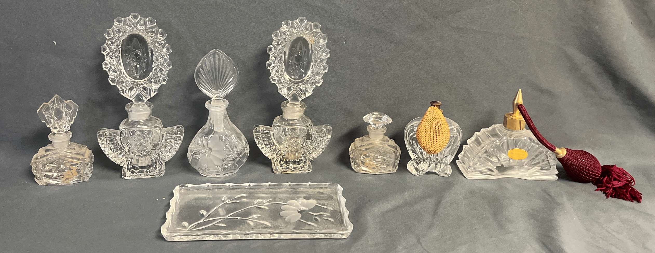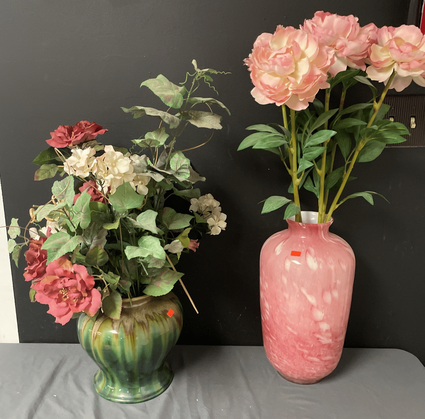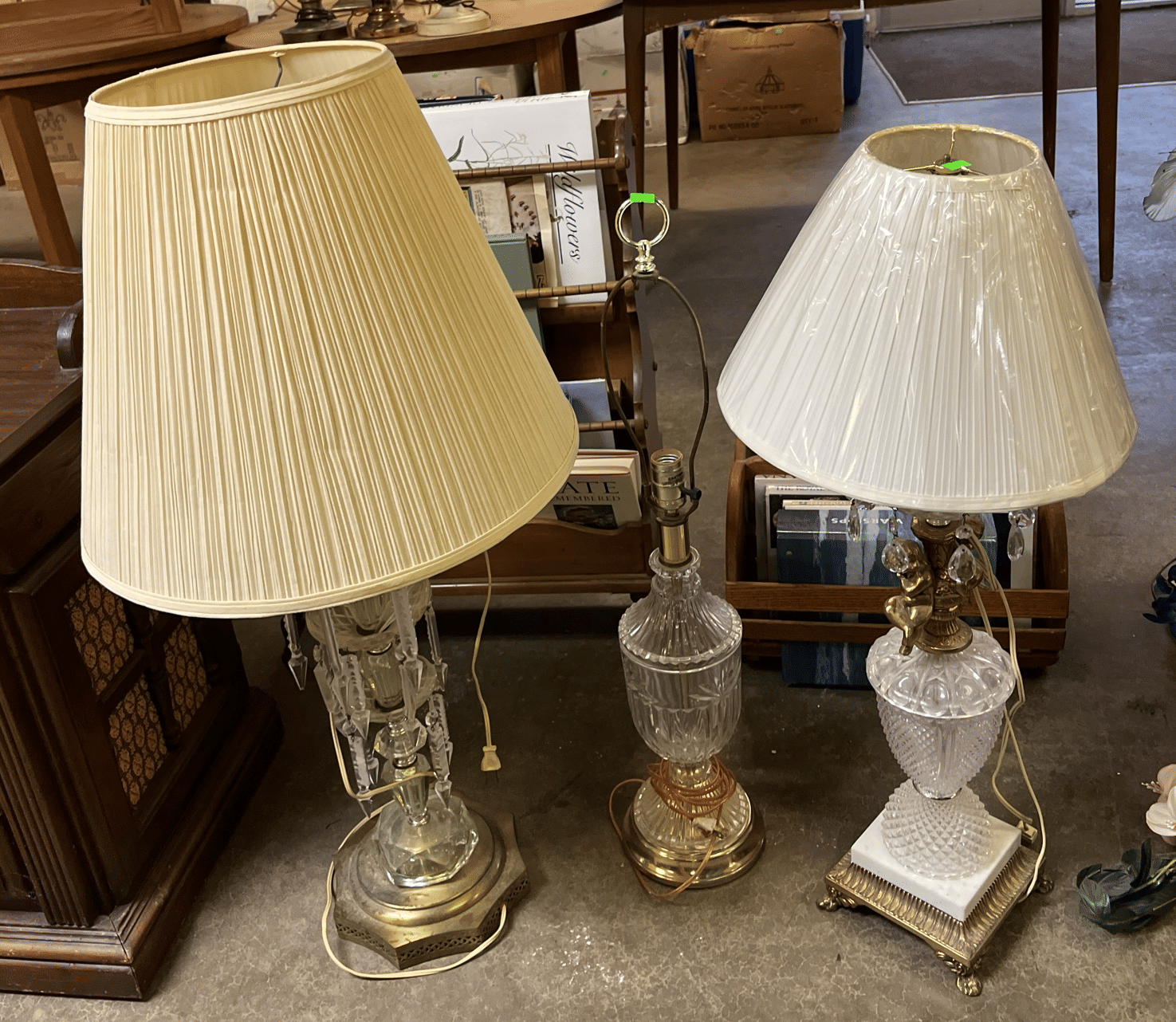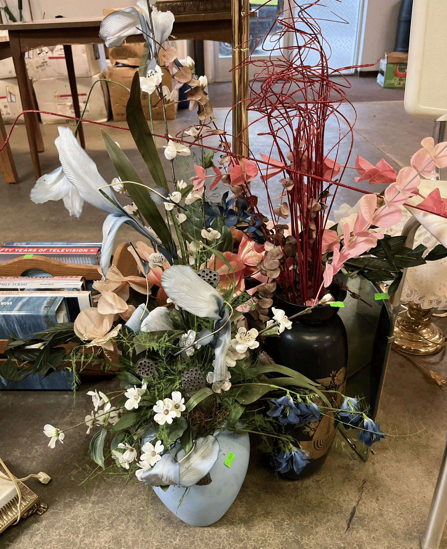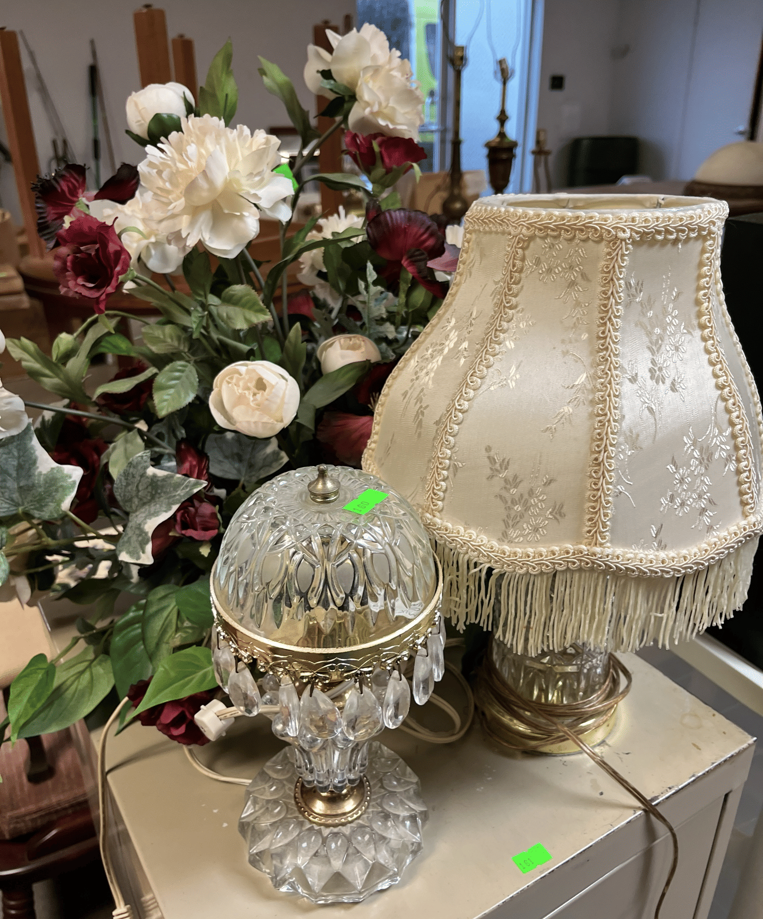 160 Glass dresser lamps and faux florals