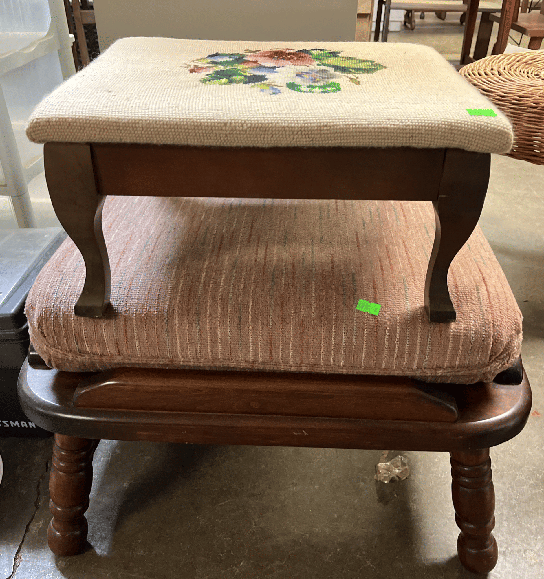 170 (2) Footstools, needlepoint 12x14x7", padded 14x22x12"