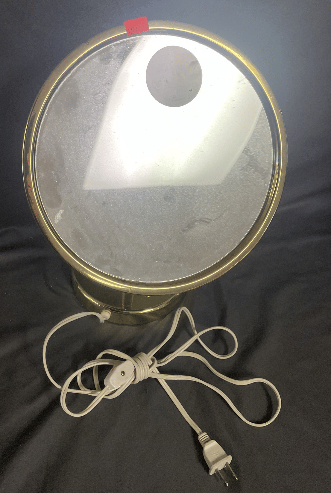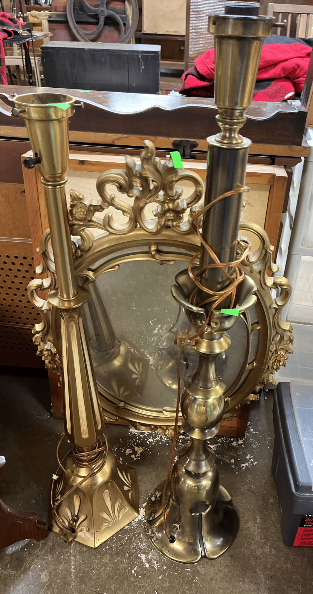 172 (2) Brass tone lamps 29"&33", plastic framed mirror 28x18"
